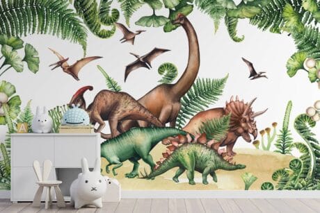Het creëren van avontuurlijke kinderkamers en babykamers is wat we het liefst doen bij Johnny Wallpaper. En dat doen we uiteraard met unieke soorten behang, muurcirkels en behangcirkels. Ons dino behang is een geweldige manier om zo’n avontuurlijke kamer bij jou thuis te realiseren. Geef je kinderen de kans om zich onder te dompelen in de magische wereld van dinosaurussen! En geef ze een kamer die hen uitnodigt om te dromen, te verkennen en te leren over deze majestueuze wezens die ooit onze planeet bewoonden.