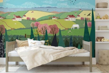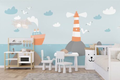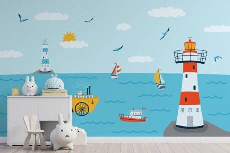 Behang – Wereldkaart met handgetekende dieren, lichtblauw