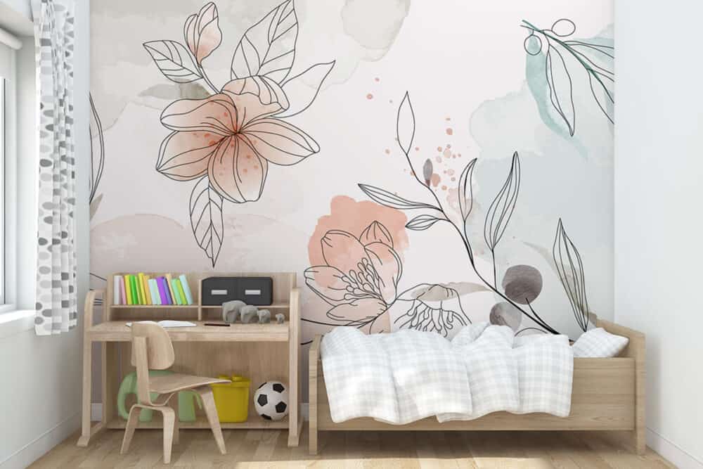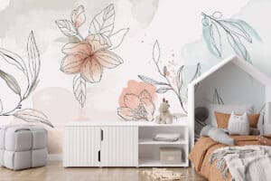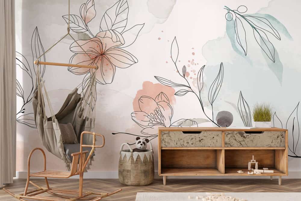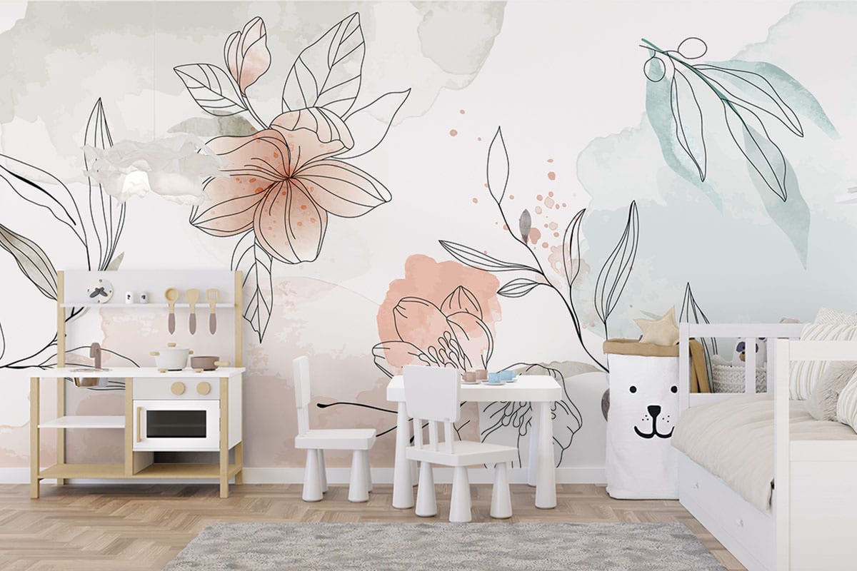 Met dit bloemige lijntekening behang creëer je een rustgevende en esthetische kinderkamer. Mooi voor jouw kindje en jezelf!
