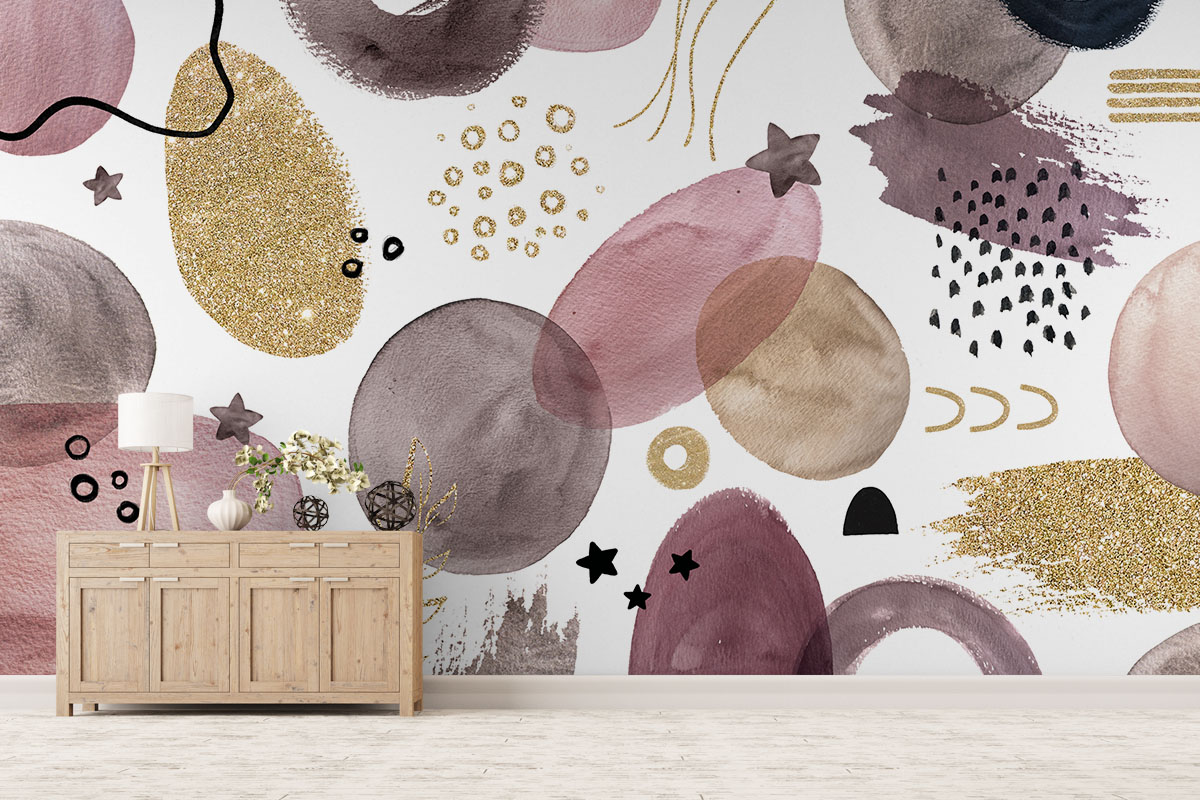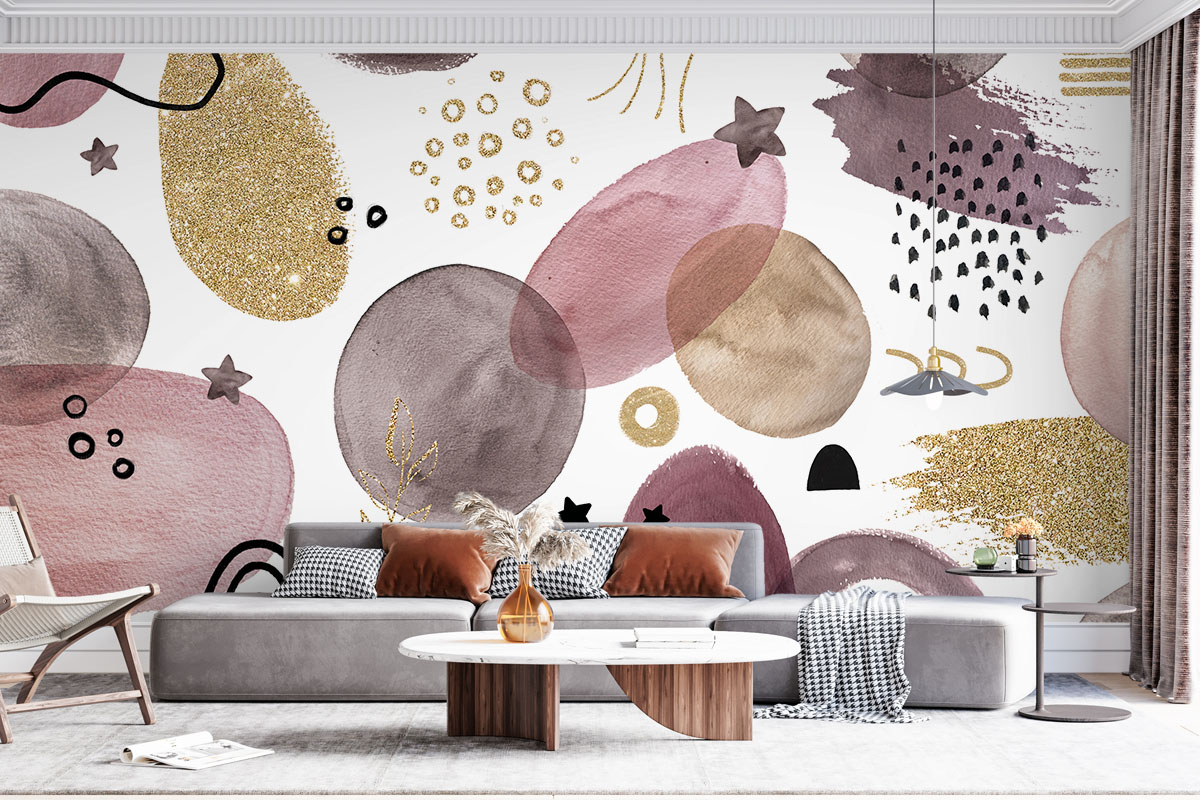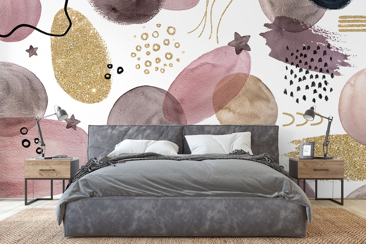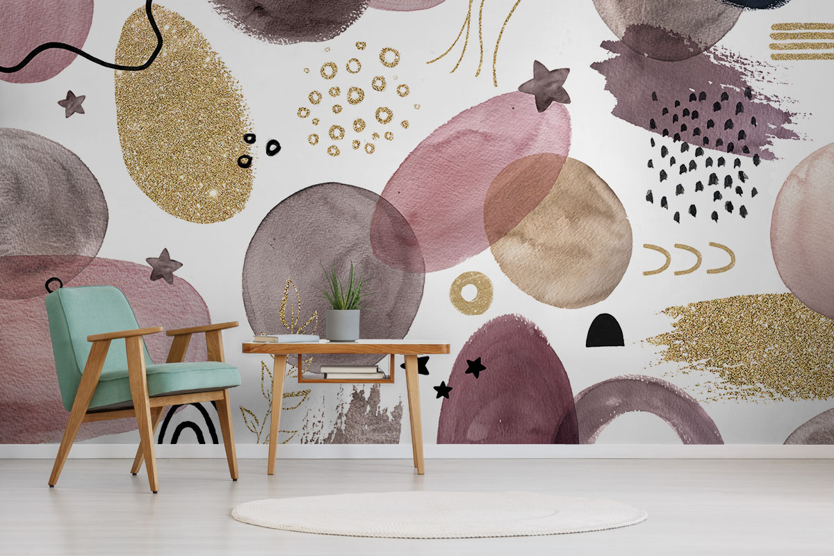 Wil je de muur combineren met verf? We hebben drie Flexa Pure kleuren geselecteerd die perfect matchen met dit fotobehang Abstracte vormen in roze en goud. Zo creëer je eenvoudig een harmonieus interieur.