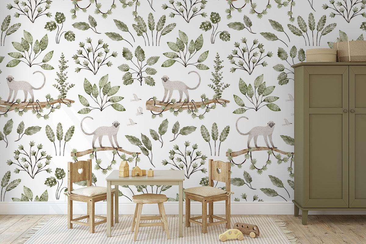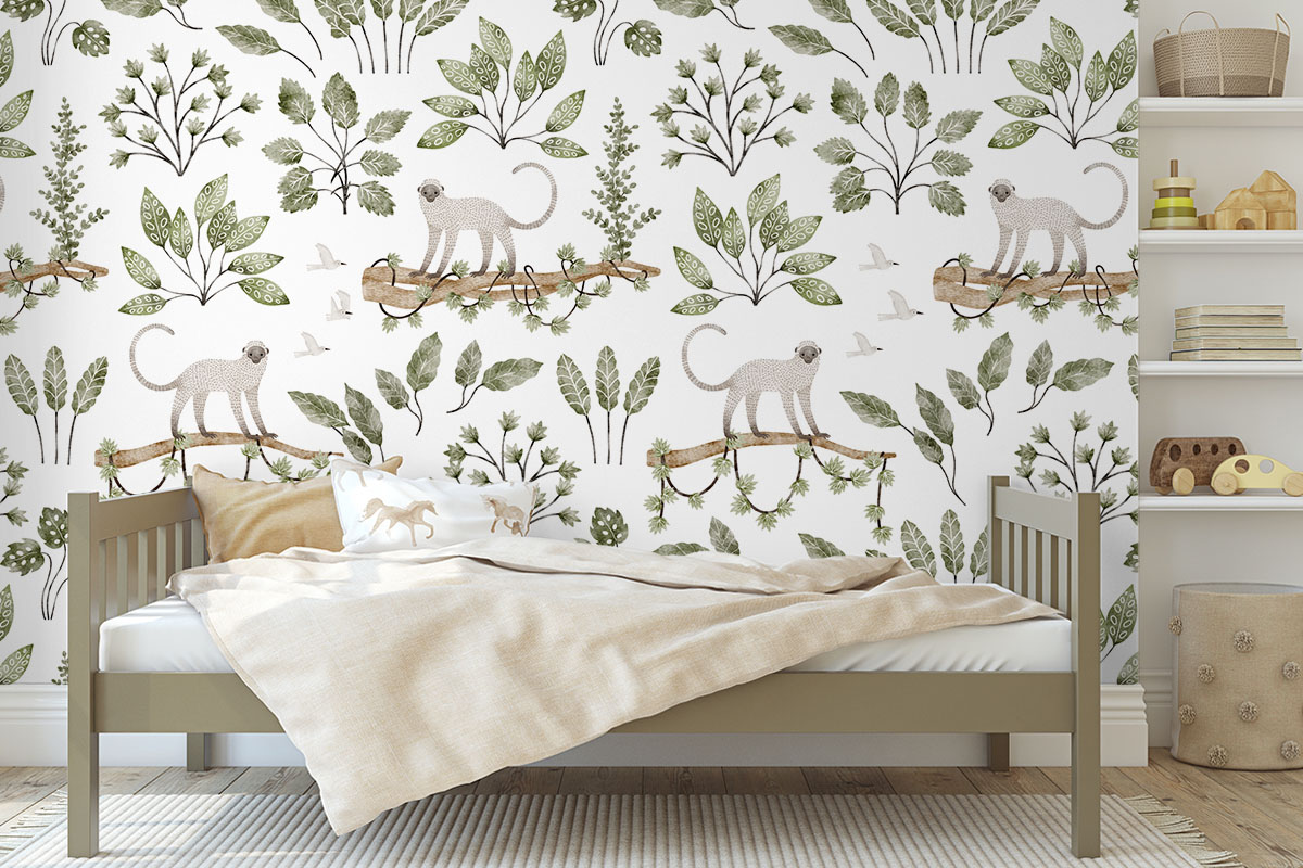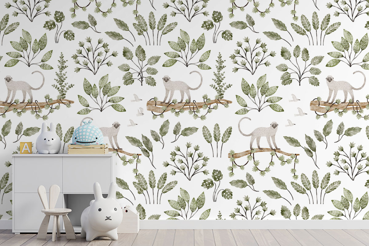 Jouw design Avontuur in de tropen wordt geprint op hoogwaardig duurzaam vliesbehang van premium kwaliteit. Dit stevige behang (200 g/m²) is krasvast, robuust en blijft jarenlang mooi — perfect voor in de kinderkamer, babykamer of speelkamer. Je kunt het behang helemaal op maat laten maken, zodat het ontwerp precies past op jouw muur. Dankzij de gladde afwerking en strakke structuur komt elk detail van het ontwerp perfect tot zijn recht.