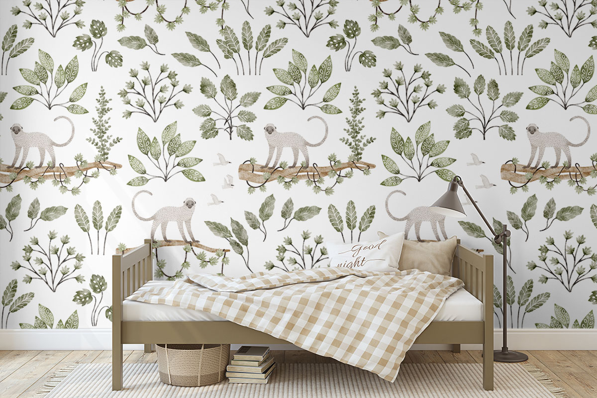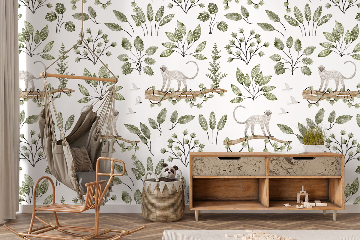 Jouw design Avontuur in de tropen wordt geprint op hoogwaardig duurzaam vliesbehang van premium kwaliteit. Dit stevige behang (200 g/m²) is krasvast, robuust en blijft jarenlang mooi — perfect voor in de kinderkamer, babykamer of speelkamer. Je kunt het behang helemaal op maat laten maken, zodat het ontwerp precies past op jouw muur. Dankzij de gladde afwerking en strakke structuur komt elk detail van het ontwerp perfect tot zijn recht.