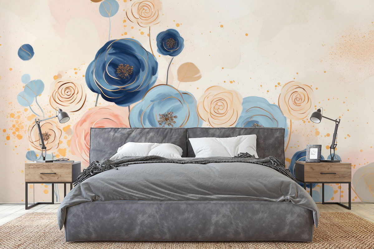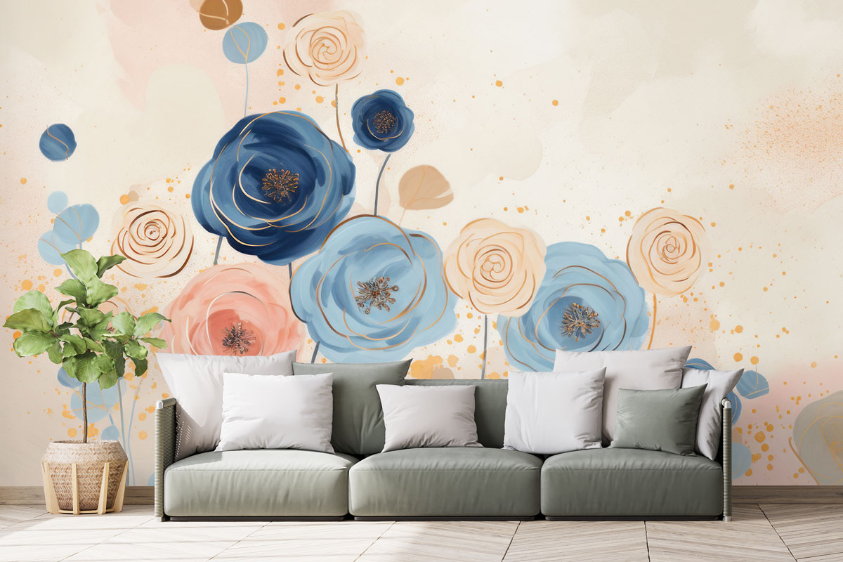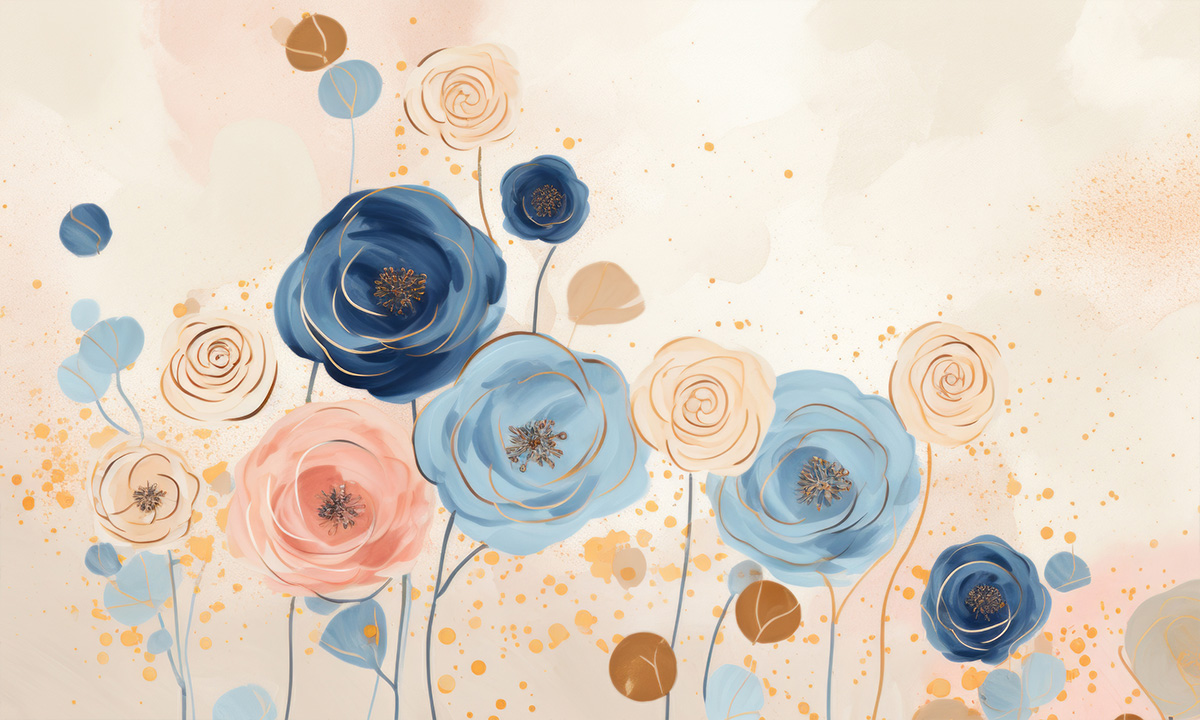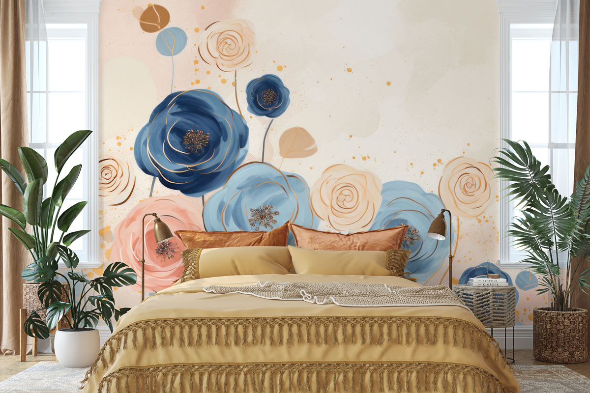 Jouw design Blauwe bloemen met gouden details wordt geprint op hoogwaardig vliesbehang van premium kwaliteit. Dit stevige behang (200 g/m²) is duurzaam, krasvast en behoudt jarenlang zijn kleur en structuur — perfect voor elke woonruimte, van woonkamer tot slaapkamer of kantoor. Het fotobehang wordt volledig op maat gemaakt, zodat het ontwerp naadloos aansluit op jouw muur. Dankzij de gladde afwerking en strakke structuur komen kleuren en details prachtig tot leven.