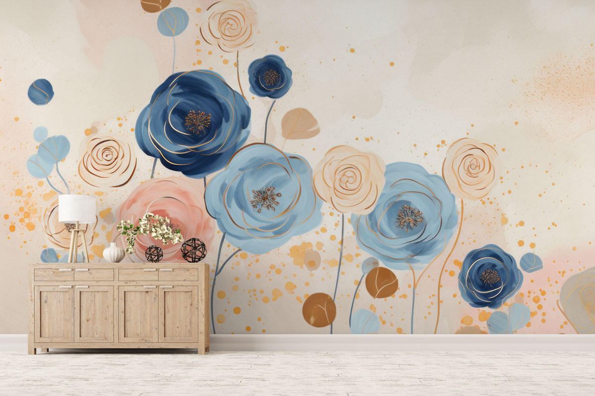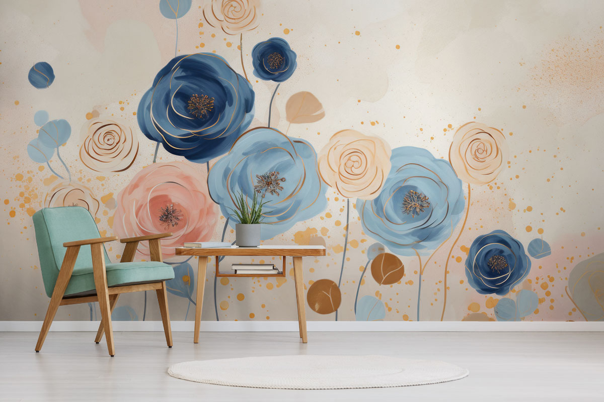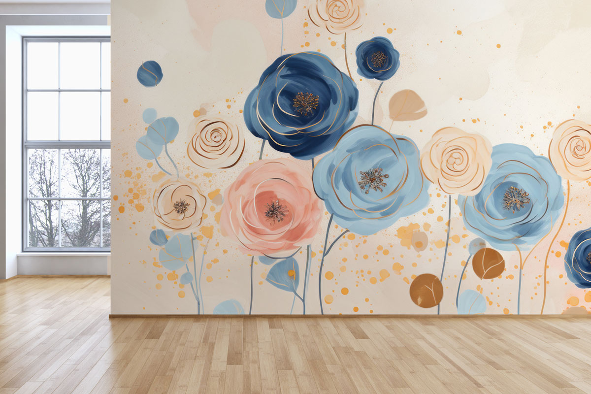 Jouw design Blauwe bloemen met gouden details wordt geprint op hoogwaardig vliesbehang van premium kwaliteit. Dit stevige behang (200 g/m²) is duurzaam, krasvast en behoudt jarenlang zijn kleur en structuur — perfect voor elke woonruimte, van woonkamer tot slaapkamer of kantoor. Het fotobehang wordt volledig op maat gemaakt, zodat het ontwerp naadloos aansluit op jouw muur. Dankzij de gladde afwerking en strakke structuur komen kleuren en details prachtig tot leven.
