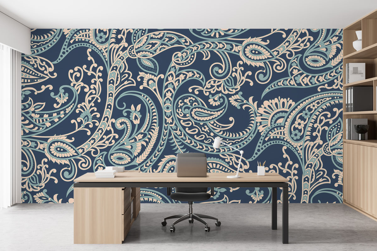Jouw design Blauwe paisley wordt geprint op hoogwaardig vliesbehang van premium kwaliteit. Dit stevige behang (200 g/m²) is duurzaam, krasvast en behoudt jarenlang zijn kleur en structuur — perfect voor elke woonruimte, van woonkamer tot slaapkamer of kantoor. Het fotobehang wordt volledig op maat gemaakt, zodat het ontwerp naadloos aansluit op jouw muur. Dankzij de gladde afwerking en strakke structuur komen kleuren en details prachtig tot leven.