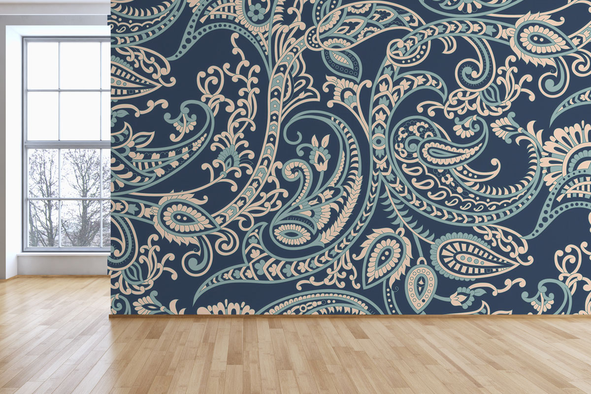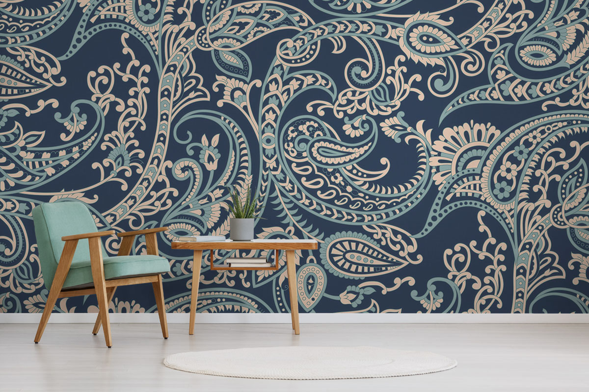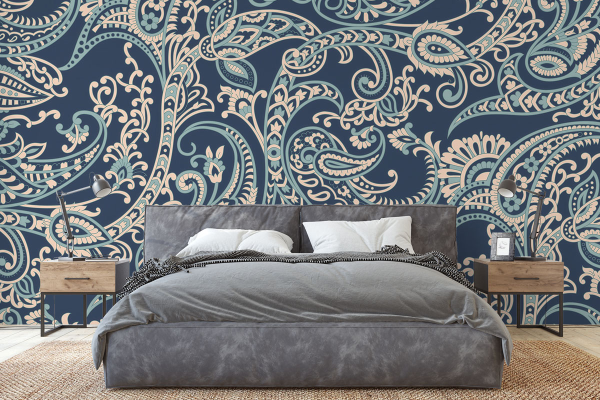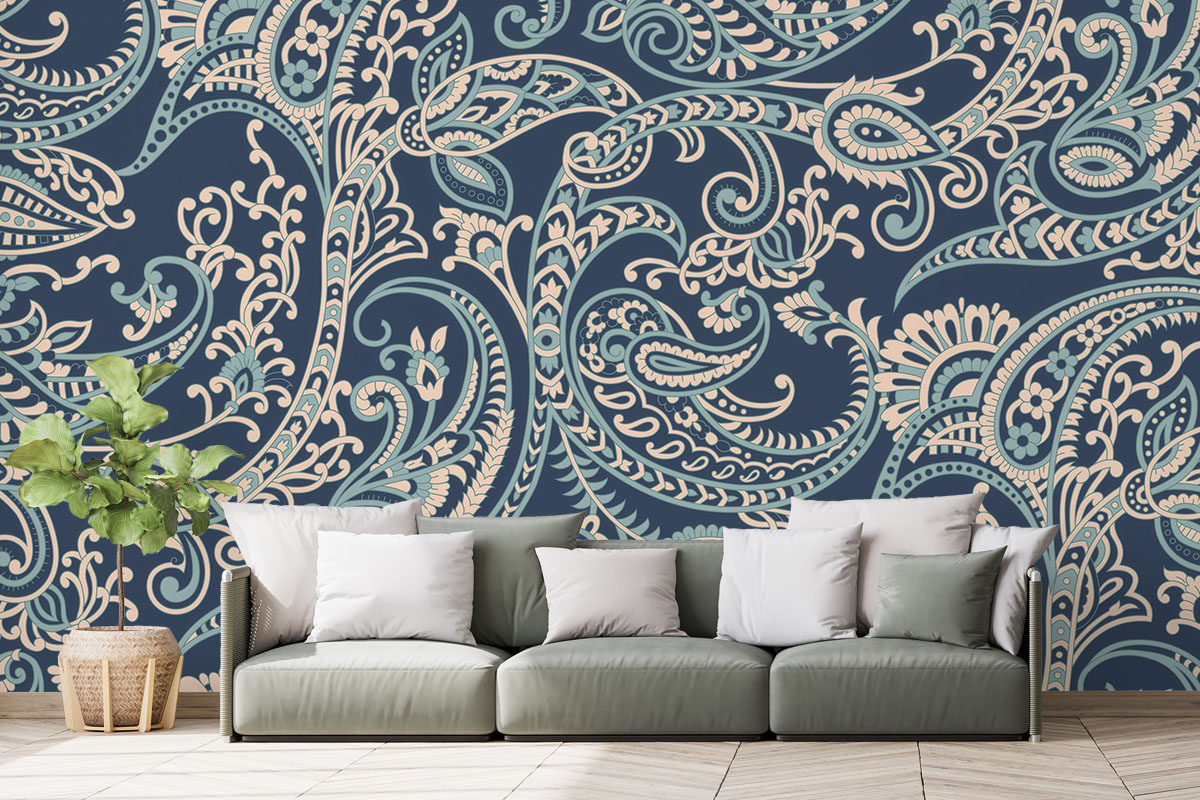 Wil je de muur combineren met verf? We hebben drie Flexa Pure kleuren geselecteerd die perfect matchen met dit fotobehang Blauwe paisley. Zo creëer je eenvoudig een harmonieus interieur.