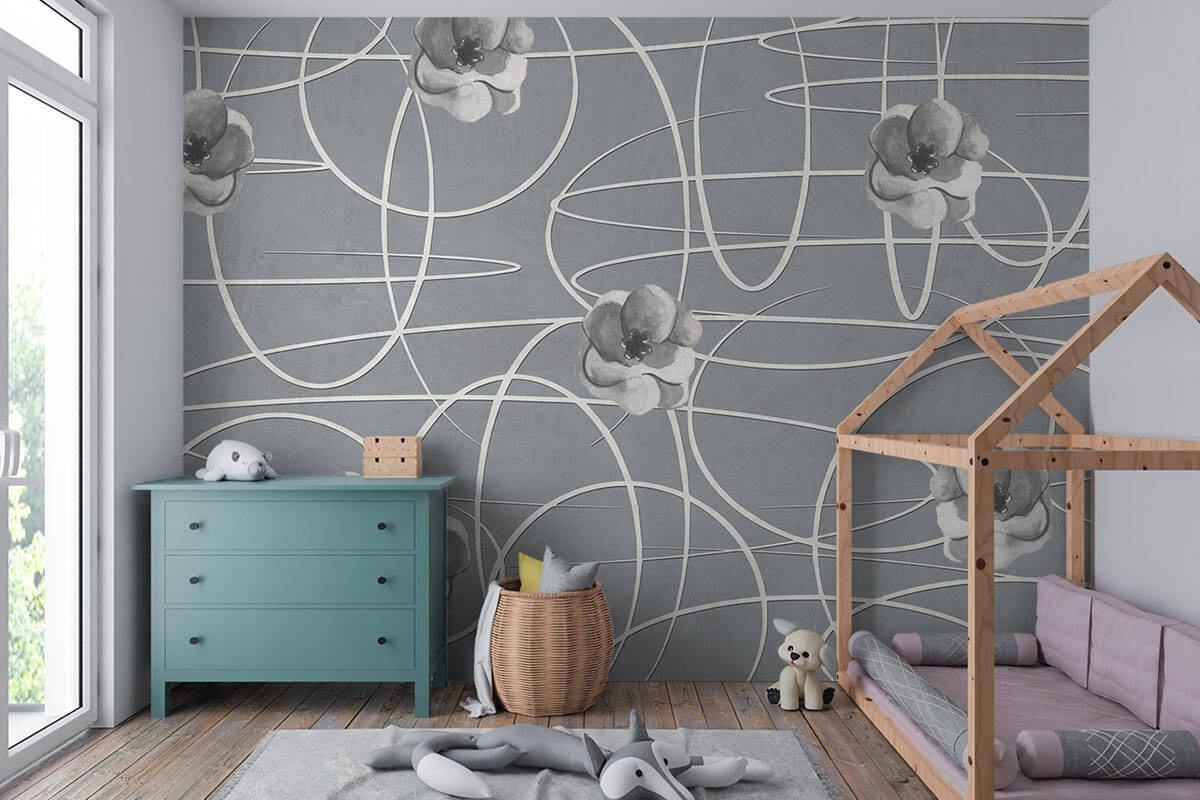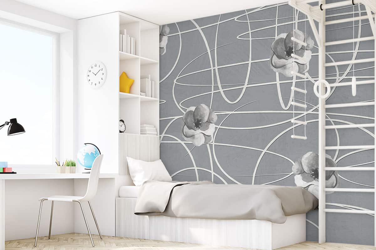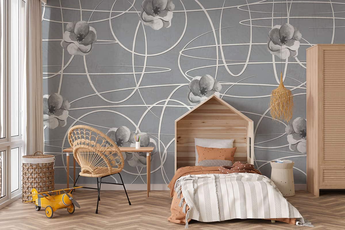 Dit kinderkamer behang met zwart-witte bloemen heeft een klassieke look. Misschien wel precies wat jij zoekt voor jouw kinderkamer.