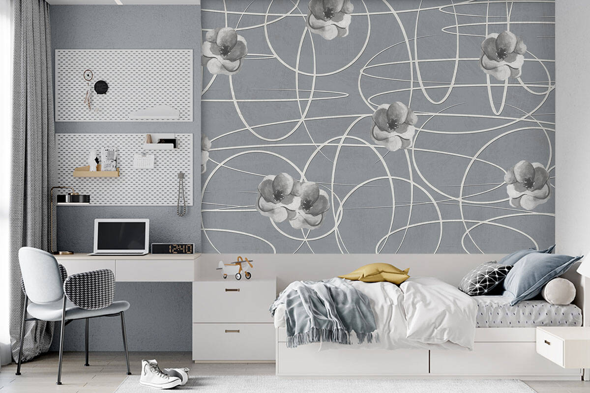 Jouw design Bloemen kunstwerk wordt geprint op hoogwaardig duurzaam vliesbehang van premium kwaliteit. Dit stevige behang (200 g/m²) is krasvast, robuust en blijft jarenlang mooi — perfect voor in de kinderkamer, babykamer of speelkamer. Je kunt het behang helemaal op maat laten maken, zodat het ontwerp precies past op jouw muur. Dankzij de gladde afwerking en strakke structuur komt elk detail van het ontwerp perfect tot zijn recht.