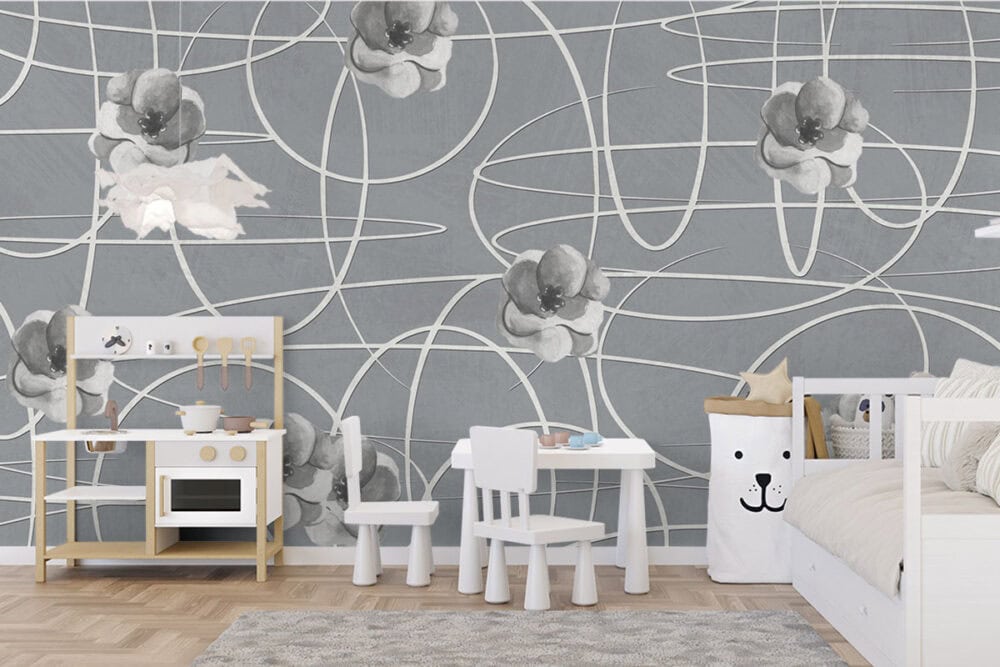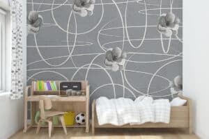 Dit kinderkamer behang met zwart-witte bloemen heeft een klassieke look. Misschien wel precies wat jij zoekt voor jouw kinderkamer.