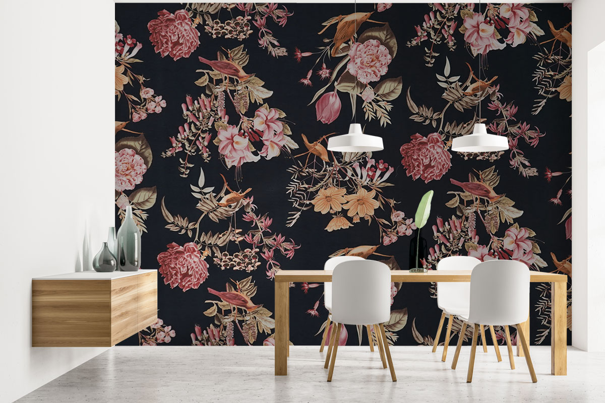 Wil je de muur combineren met verf? We hebben drie Flexa Pure kleuren geselecteerd die perfect matchen met dit fotobehang Bloemen uit de 18e eeuw. Zo creëer je eenvoudig een harmonieus interieur.