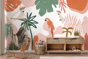 Jouw design Boho papegaaien wordt geprint op hoogwaardig duurzaam vliesbehang van premium kwaliteit. Dit stevige behang (200 g/m²) is krasvast, robuust en blijft jarenlang mooi — perfect voor in de kinderkamer, babykamer of speelkamer. Je kunt het behang helemaal op maat laten maken, zodat het ontwerp precies past op jouw muur. Dankzij de gladde afwerking en strakke structuur komt elk detail van het ontwerp perfect tot zijn recht.