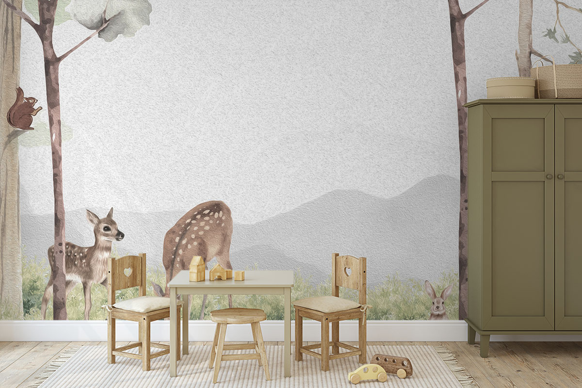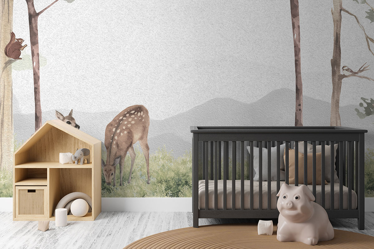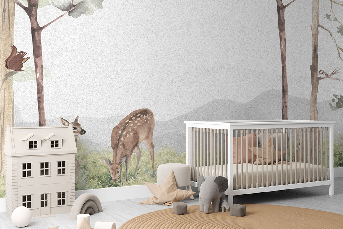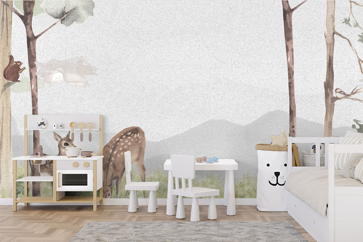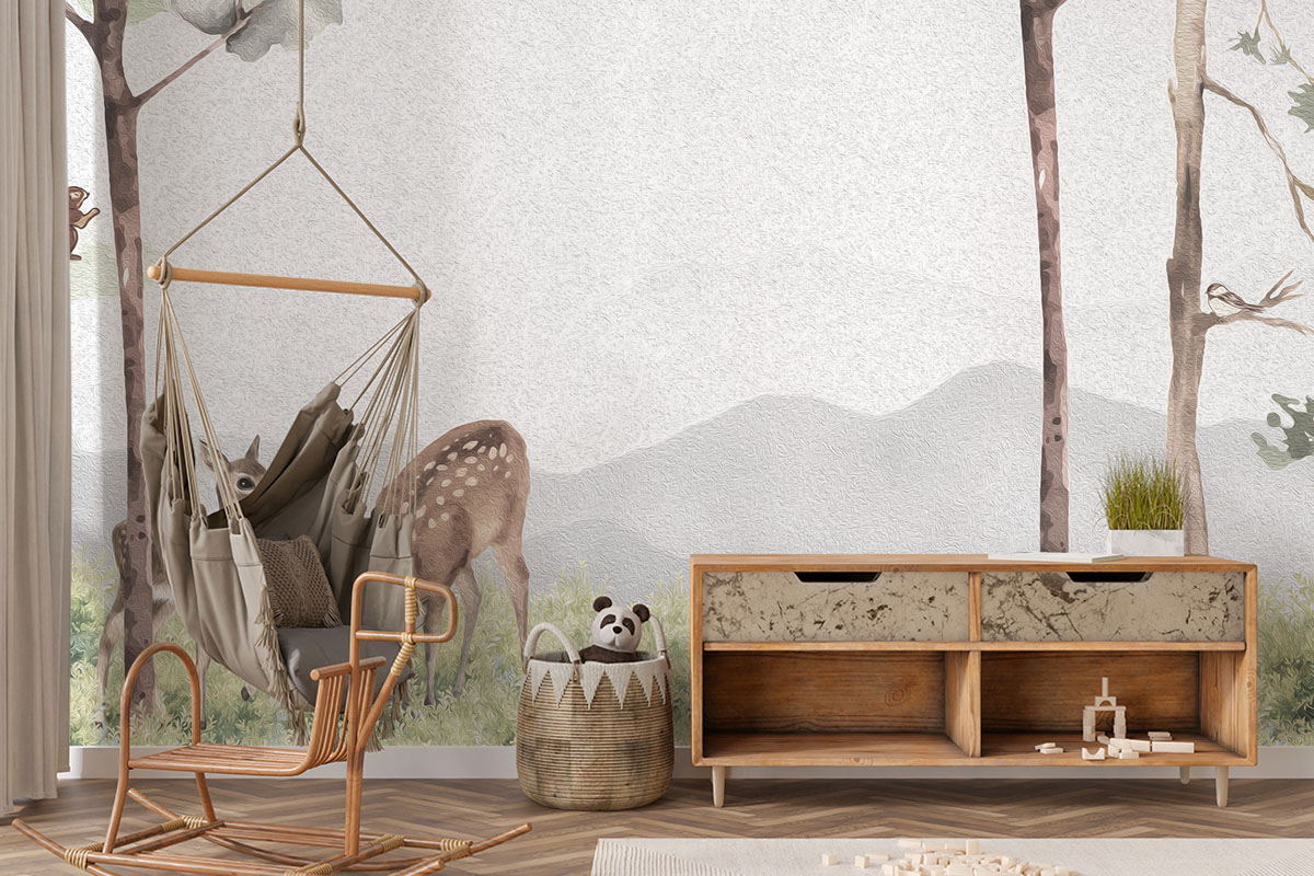 Wil je naast het behang ook een muur in de baby- of kinderkamer verven? Wij hebben alvast 3 Flexa Pure kleuren geselecteerd die perfect passen bij dit fotobehang Bosvriendjes.