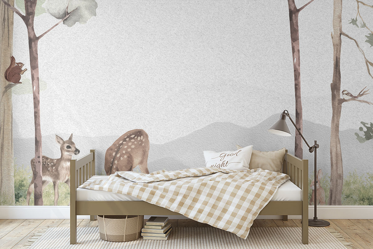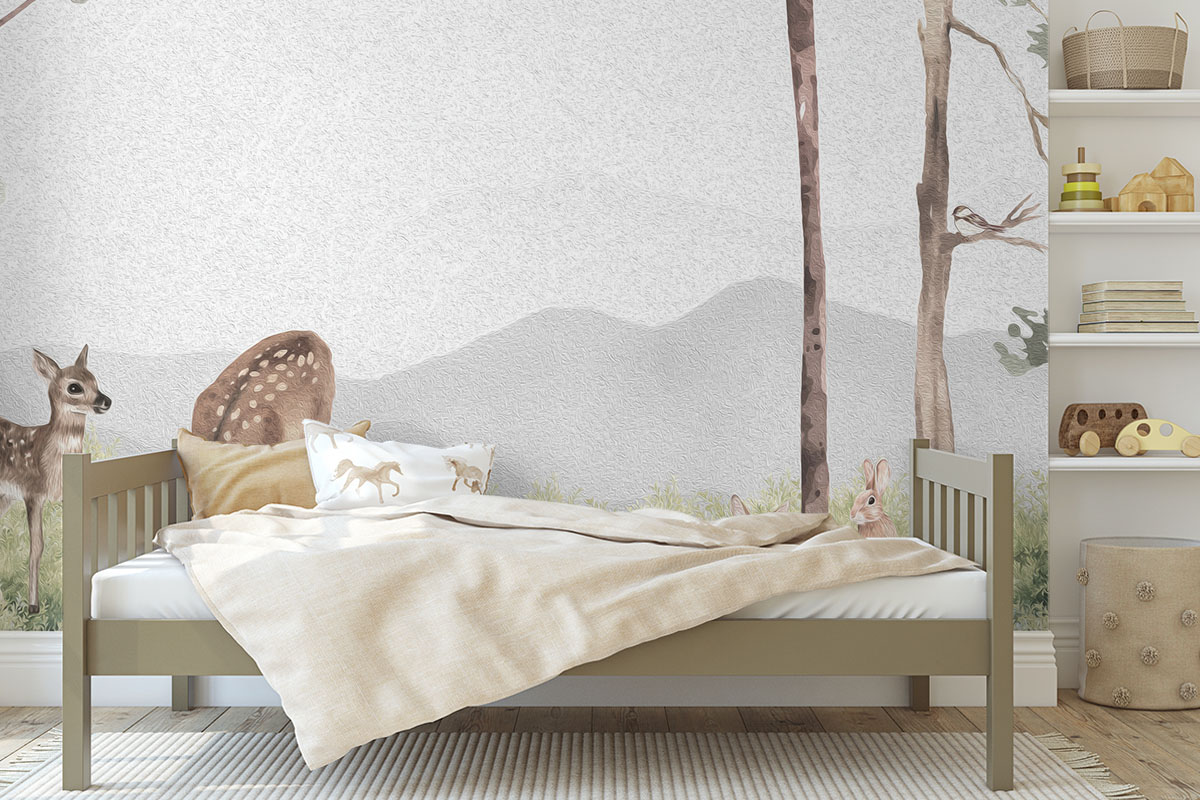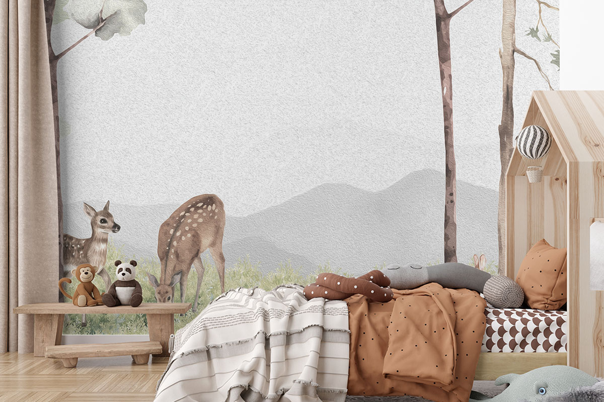 Jouw design Bosvriendjes wordt geprint op hoogwaardig duurzaam vliesbehang van premium kwaliteit. Dit stevige behang (200 g/m²) is krasvast, robuust en blijft jarenlang mooi — perfect voor in de kinderkamer, babykamer of speelkamer. Je kunt het behang helemaal op maat laten maken, zodat het ontwerp precies past op jouw muur. Dankzij de gladde afwerking en strakke structuur komt elk detail van het ontwerp perfect tot zijn recht.