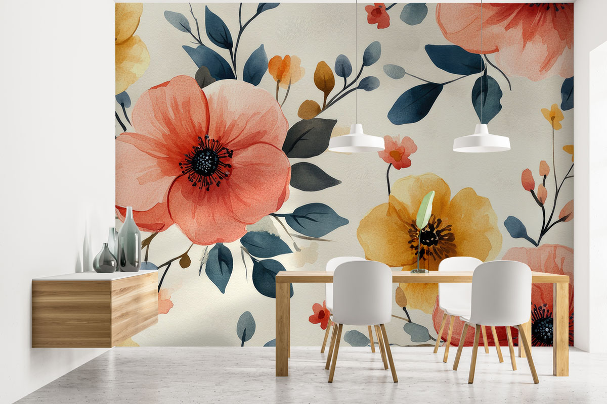 Wil je de muur combineren met verf? We hebben drie Flexa Pure kleuren geselecteerd die perfect matchen met dit fotobehang Dans van klaprozen. Zo creëer je eenvoudig een harmonieus interieur.