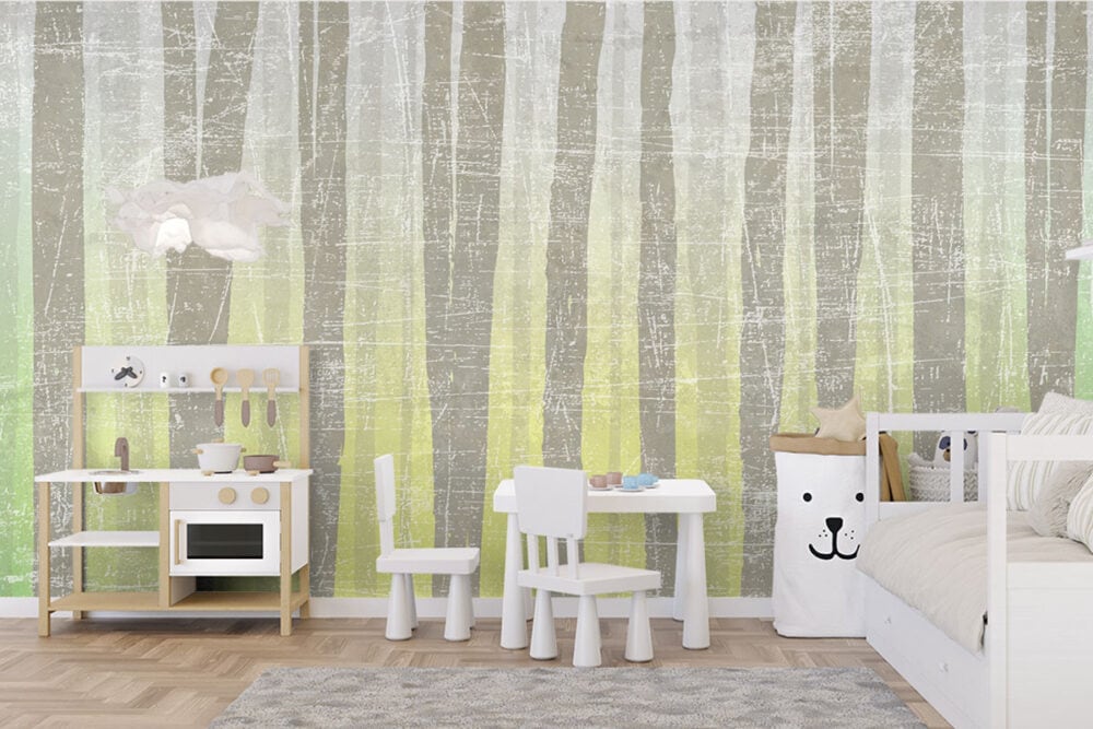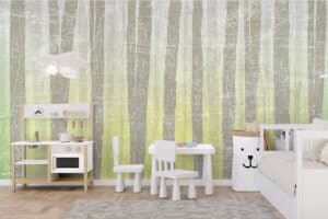Wil je naast het behang ook een muur in de baby- of kinderkamer verven? Wij hebben alvast 3 Flexa Pure kleuren geselecteerd die perfect passen bij dit fotobehang De zon schijnt door het bos.