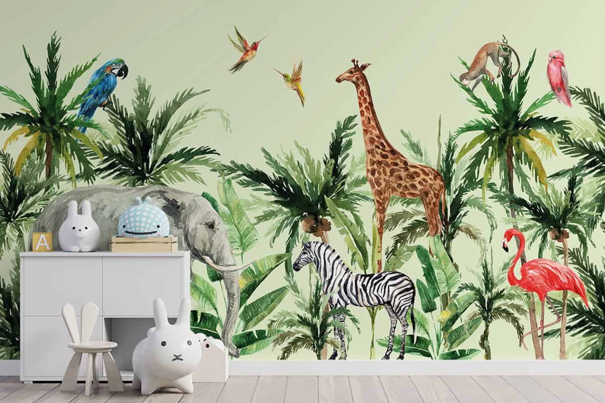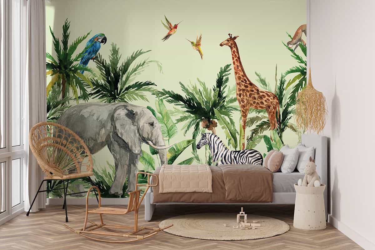 Wil je naast het behang ook een muur in de baby- of kinderkamer verven? Wij hebben alvast 3 Flexa Pure kleuren geselecteerd die perfect passen bij dit fotobehang Dieren koninkrijk.