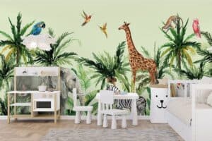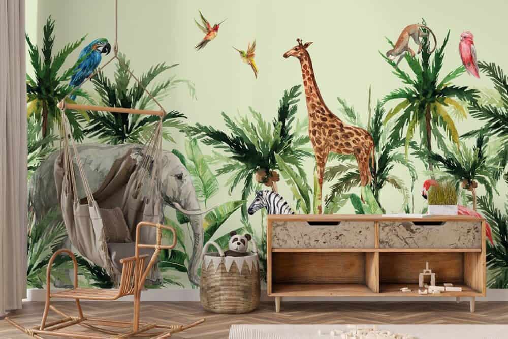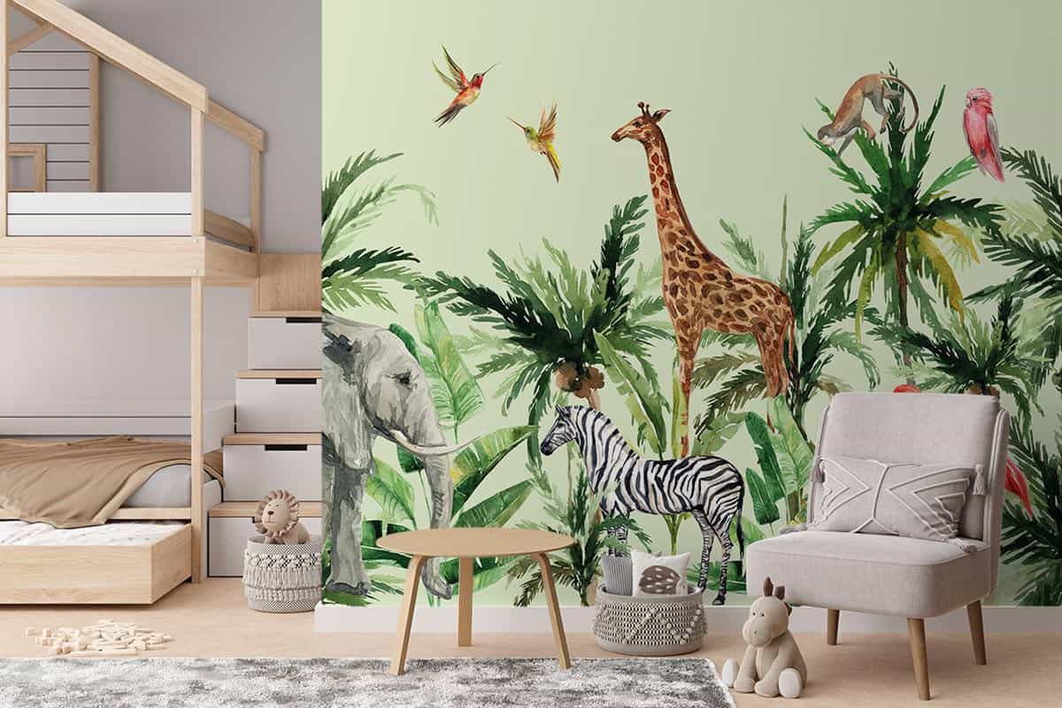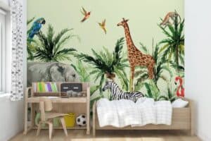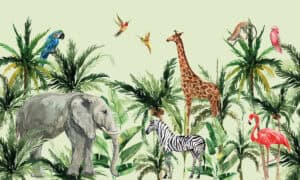 Wil je naast het behang ook een muur in de baby- of kinderkamer verven? Wij hebben alvast 3 Flexa Pure kleuren geselecteerd die perfect passen bij dit fotobehang Dieren koninkrijk.