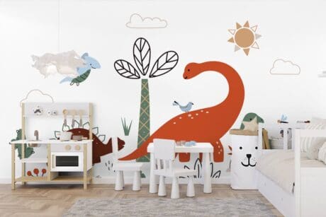 Jouw design Dino avontuur in de woestijn wordt geprint op hoogwaardig duurzaam vliesbehang van premium kwaliteit. Dit stevige behang (200 g/m²) is krasvast, robuust en blijft jarenlang mooi — perfect voor in de kinderkamer, babykamer of speelkamer. Je kunt het behang helemaal op maat laten maken, zodat het ontwerp precies past op jouw muur. Dankzij de gladde afwerking en strakke structuur komt elk detail van het ontwerp perfect tot zijn recht.