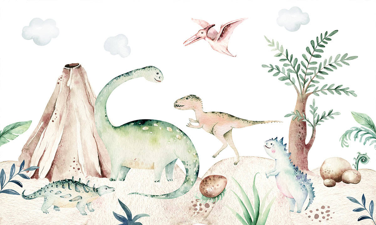 Wil je naast het behang ook een muur in de baby- of kinderkamer verven? Wij hebben alvast 3 Flexa Pure kleuren geselecteerd die perfect passen bij dit fotobehang Dino avontuur in de woestijn.