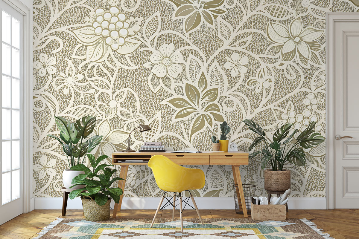 Wil je de muur combineren met verf? We hebben drie Flexa Pure kleuren geselecteerd die perfect matchen met dit fotobehang Druivenkant. Zo creëer je eenvoudig een harmonieus interieur.