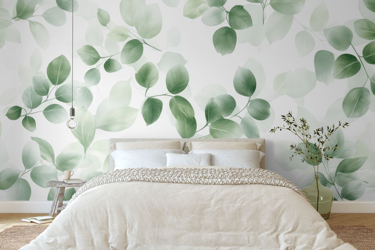 Wil je de muur combineren met verf? We hebben drie Flexa Pure kleuren geselecteerd die perfect matchen met dit fotobehang Eucalyptus flow. Zo creëer je eenvoudig een harmonieus interieur.
