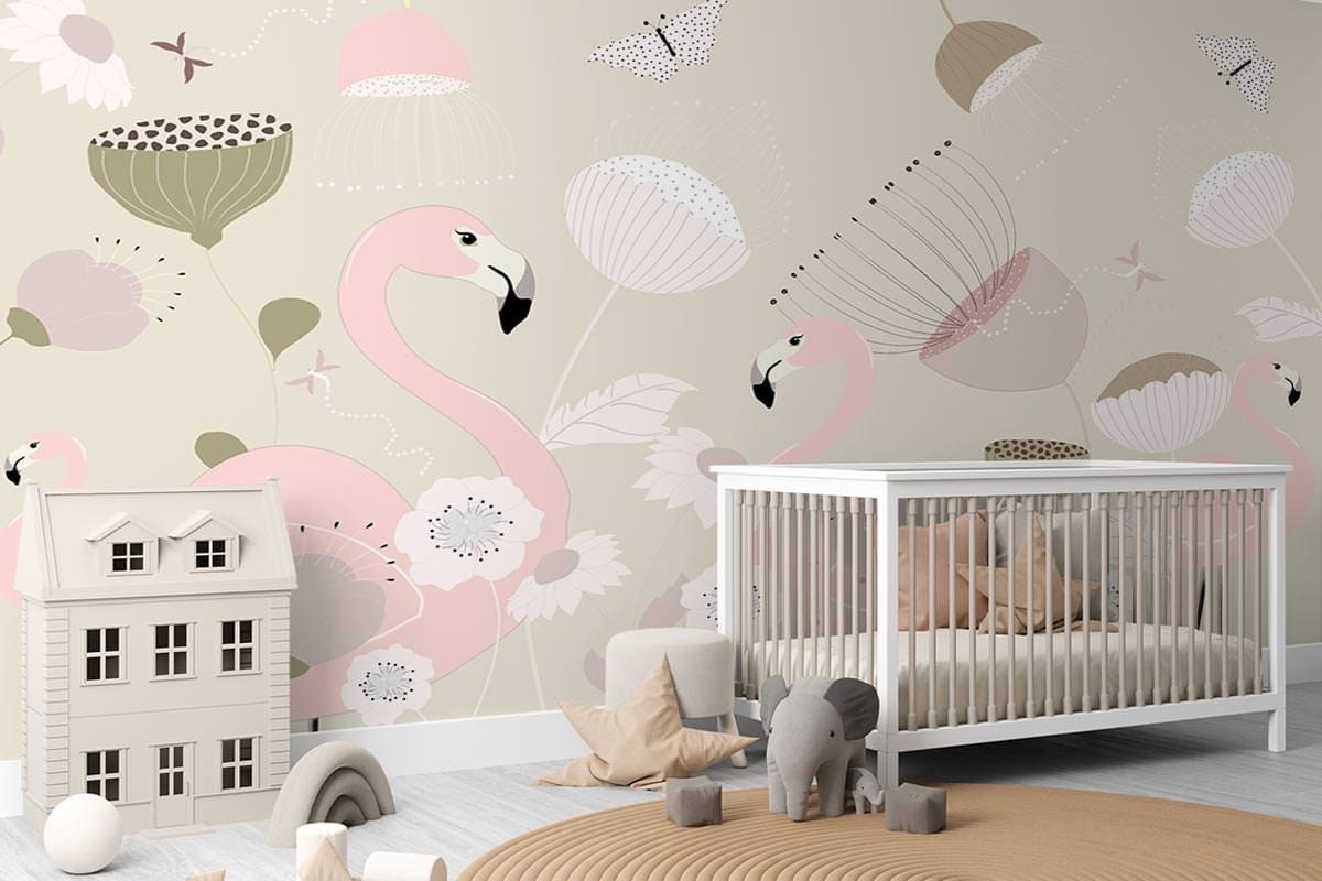 Wil je naast het behang ook een muur in de baby- of kinderkamer verven? Wij hebben alvast 3 Flexa Pure kleuren geselecteerd die perfect passen bij dit fotobehang Flamingo familie.