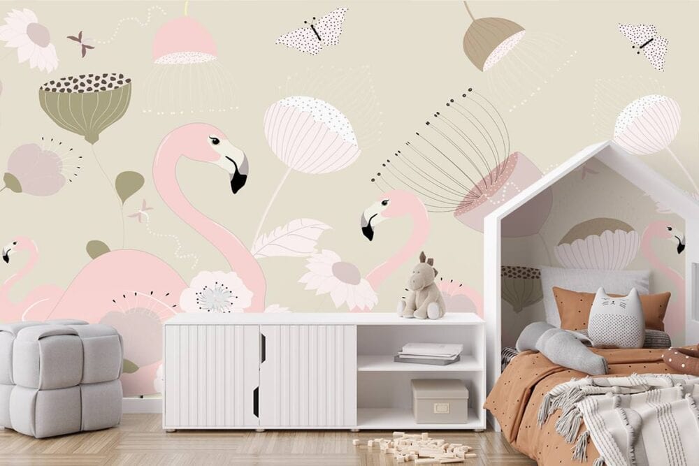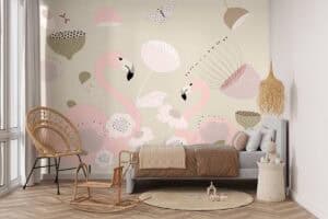 Wil je naast het behang ook een muur in de baby- of kinderkamer verven? Wij hebben alvast 3 Flexa Pure kleuren geselecteerd die perfect passen bij dit fotobehang Flamingo familie.