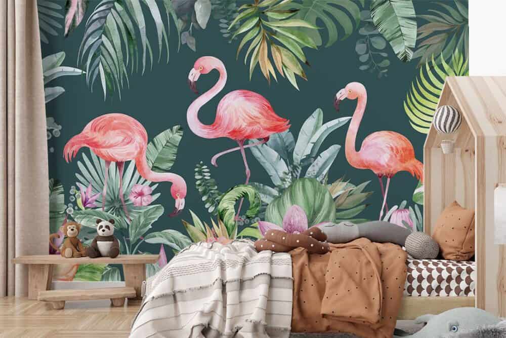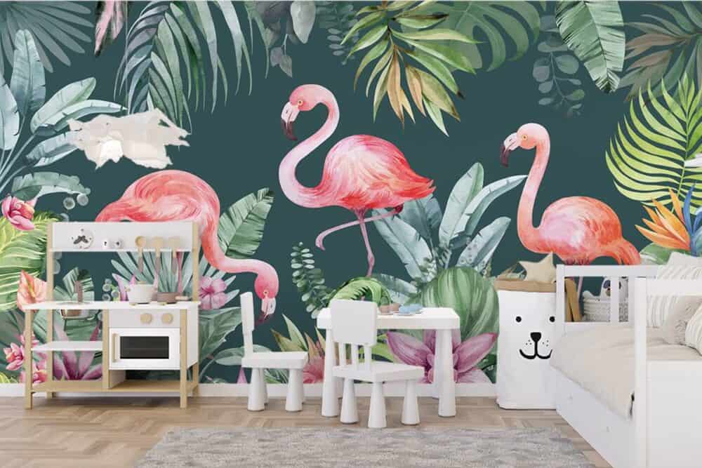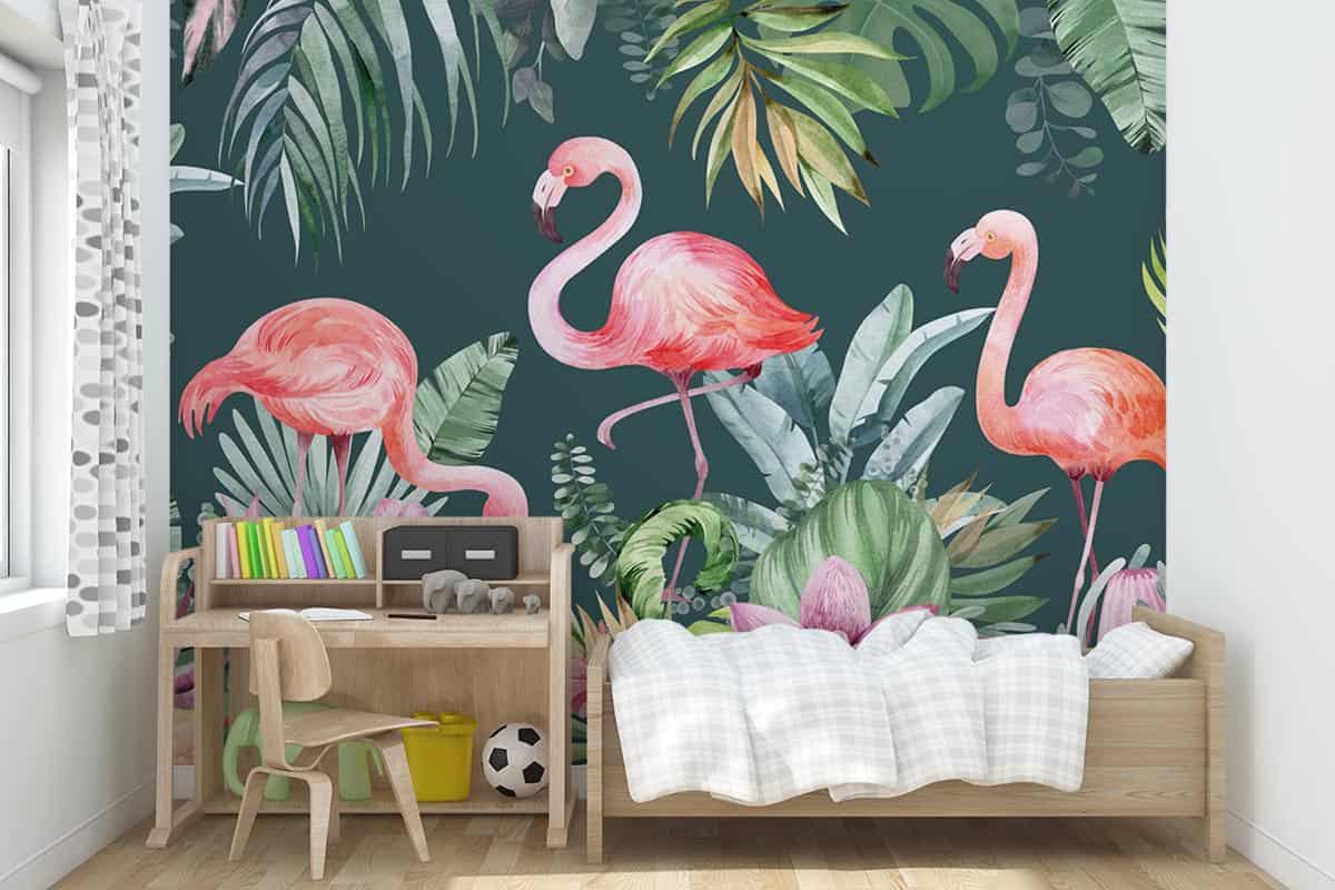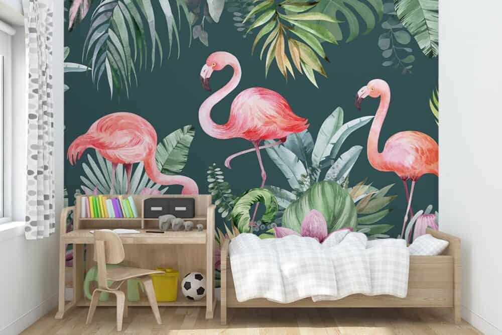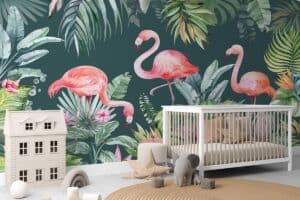 Wil je naast het behang ook een muur in de baby- of kinderkamer verven? Wij hebben alvast 3 Flexa Pure kleuren geselecteerd die perfect passen bij dit fotobehang Flamingo's in de tropen.