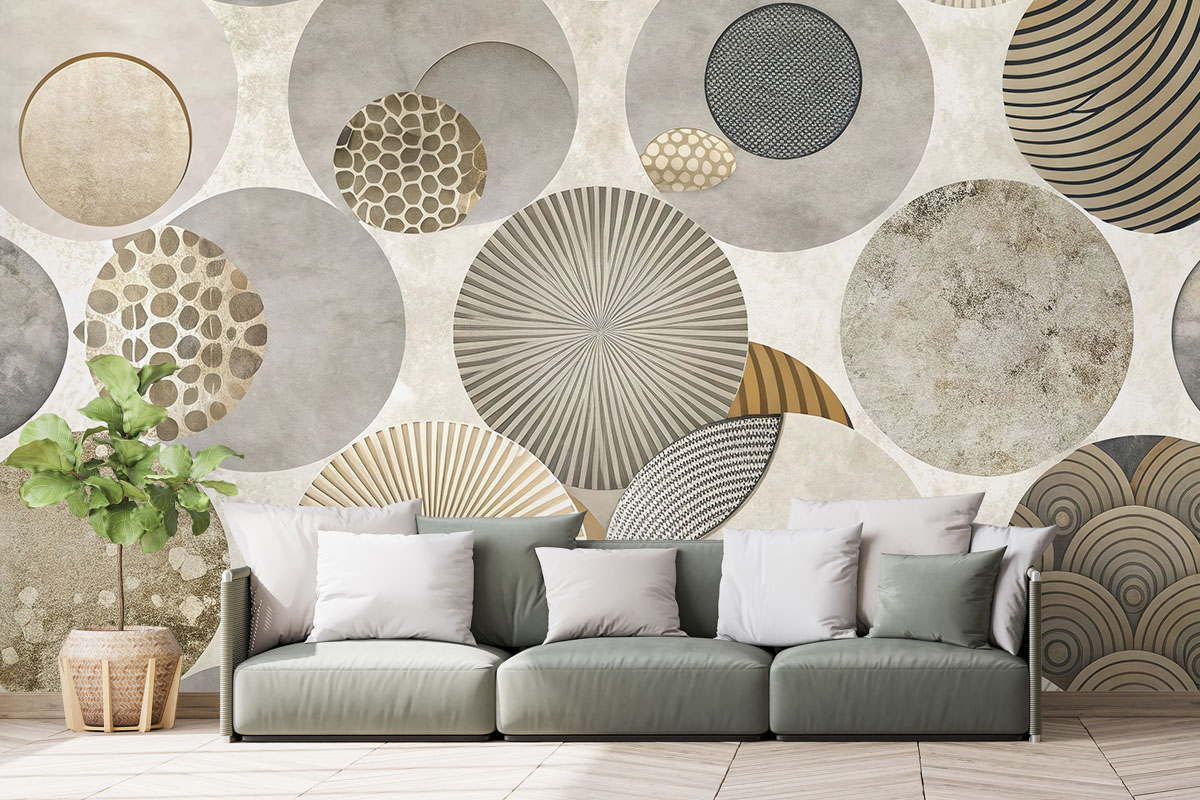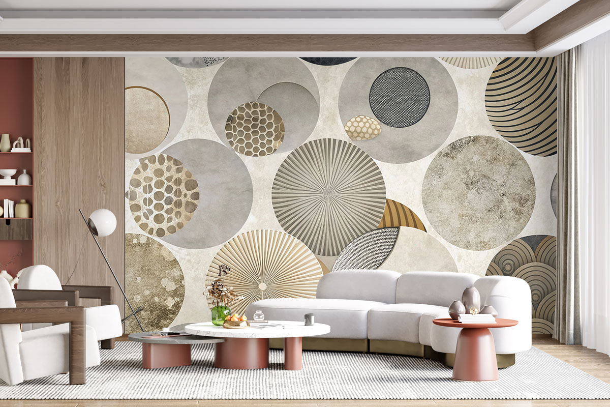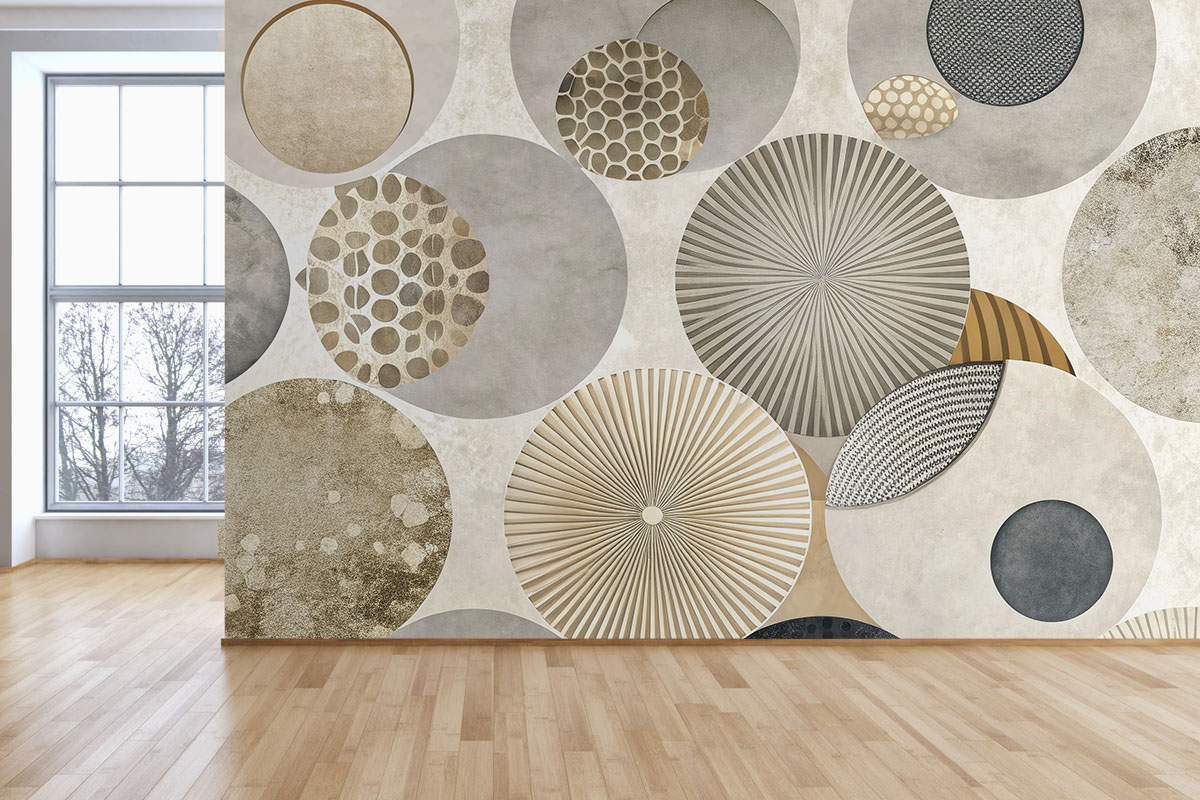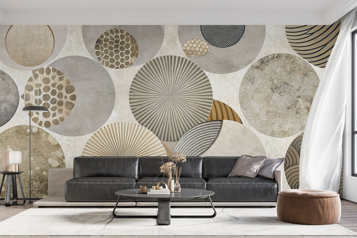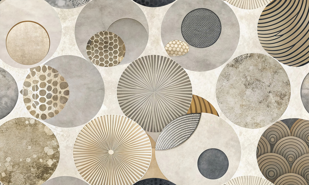 Modern geometrisch ontwerp met overlappende cirkels in neutrale grijstinten. Strak, elegant en vol diepte.