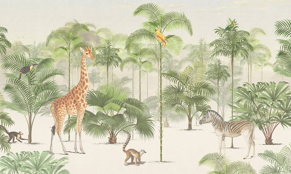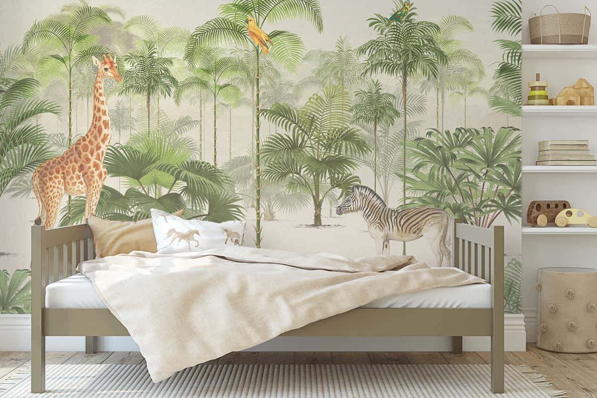 Wil je naast het behang ook een muur in de baby- of kinderkamer verven? Wij hebben alvast 3 Flexa Pure kleuren geselecteerd die perfect passen bij dit fotobehang Giraf en zebra in de jungle.