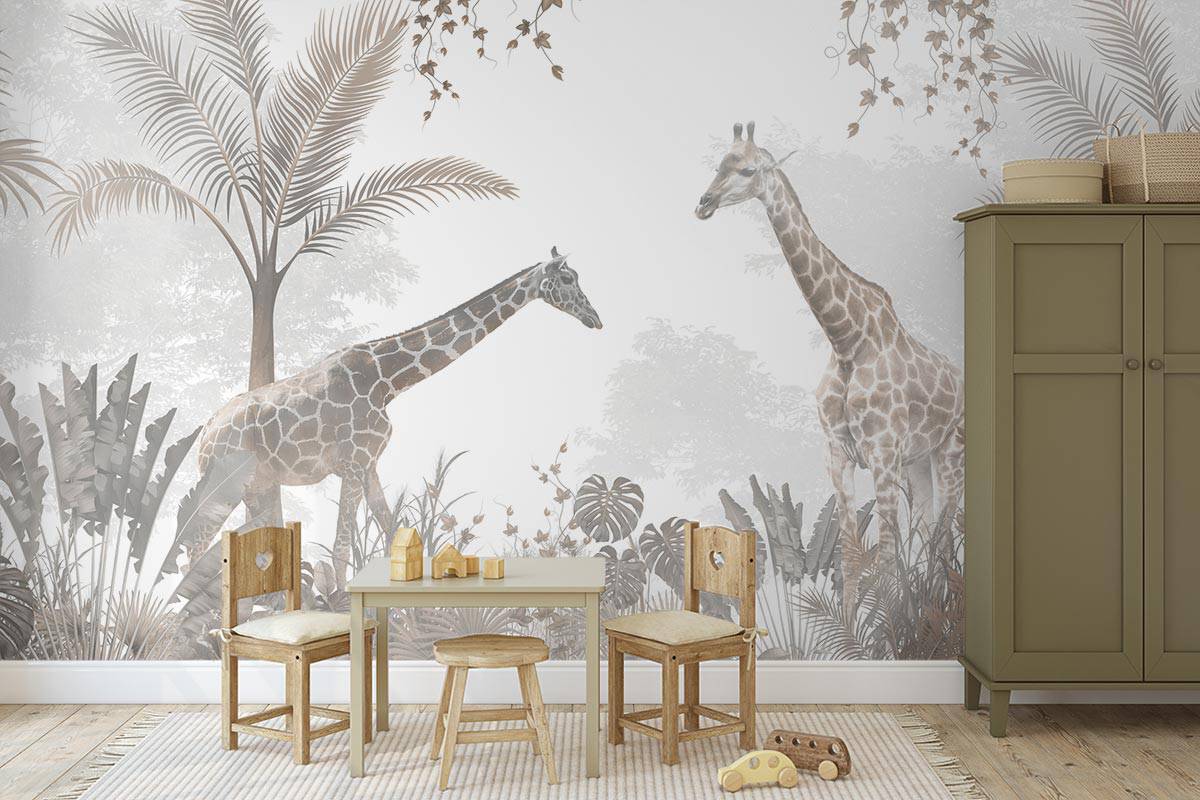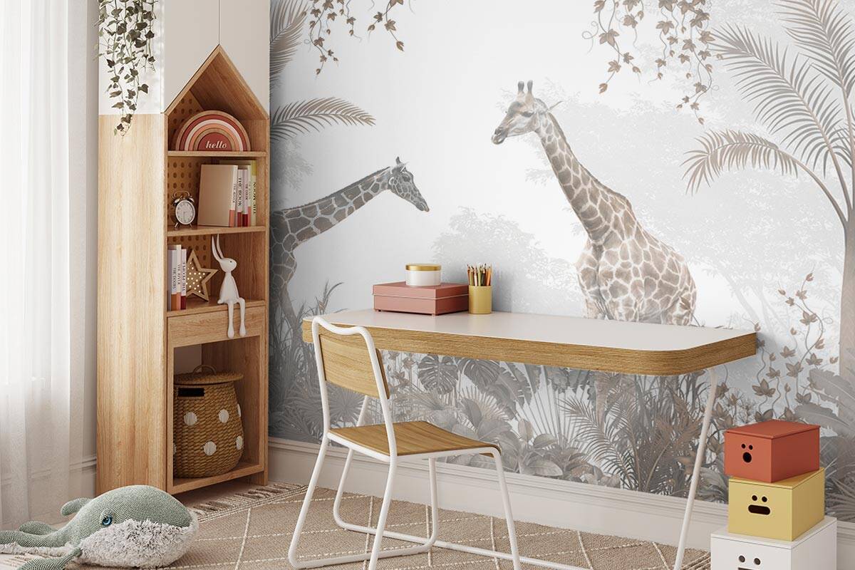 Jouw design Giraffen in het bos wordt geprint op hoogwaardig duurzaam vliesbehang van premium kwaliteit. Dit stevige behang (200 g/m²) is krasvast, robuust en blijft jarenlang mooi — perfect voor in de kinderkamer, babykamer of speelkamer. Je kunt het behang helemaal op maat laten maken, zodat het ontwerp precies past op jouw muur. Dankzij de gladde afwerking en strakke structuur komt elk detail van het ontwerp perfect tot zijn recht.