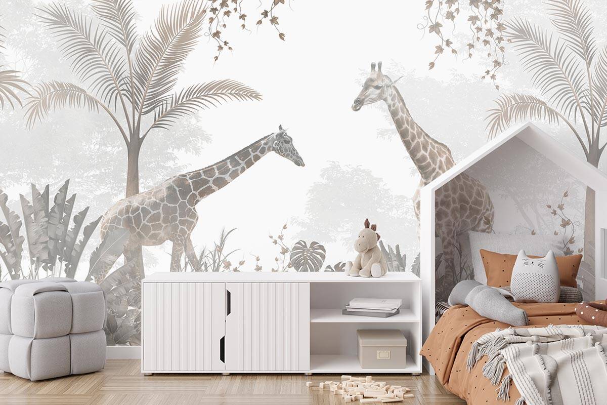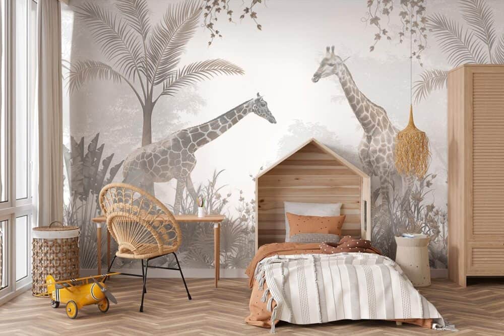 Jouw design Giraffen in het bos wordt geprint op hoogwaardig duurzaam vliesbehang van premium kwaliteit. Dit stevige behang (200 g/m²) is krasvast, robuust en blijft jarenlang mooi — perfect voor in de kinderkamer, babykamer of speelkamer. Je kunt het behang helemaal op maat laten maken, zodat het ontwerp precies past op jouw muur. Dankzij de gladde afwerking en strakke structuur komt elk detail van het ontwerp perfect tot zijn recht.