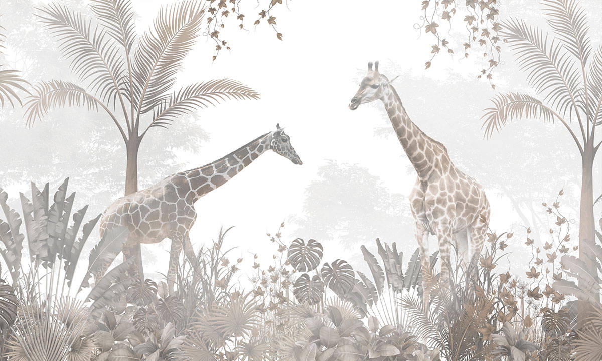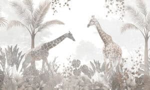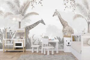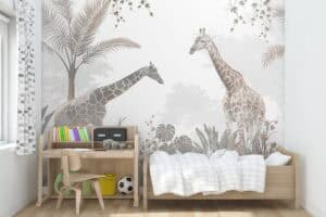 Wil je naast het behang ook een muur in de baby- of kinderkamer verven? Wij hebben alvast 3 Flexa Pure kleuren geselecteerd die perfect passen bij dit fotobehang Giraffen in het bos.