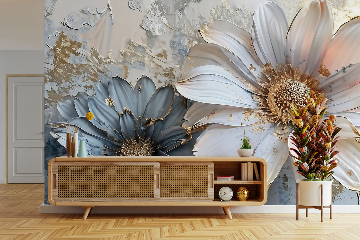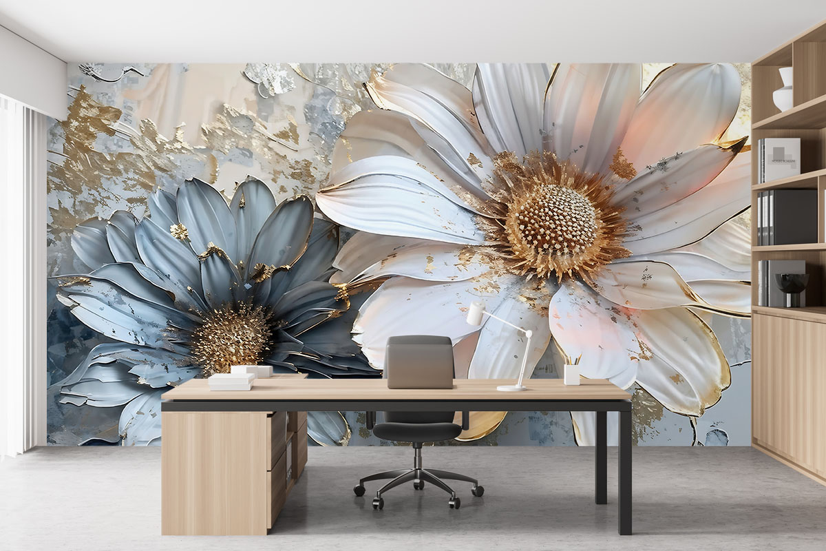 Jouw design Gouden margrietjes wordt geprint op hoogwaardig vliesbehang van premium kwaliteit. Dit stevige behang (200 g/m²) is duurzaam, krasvast en behoudt jarenlang zijn kleur en structuur — perfect voor elke woonruimte, van woonkamer tot slaapkamer of kantoor. Het fotobehang wordt volledig op maat gemaakt, zodat het ontwerp naadloos aansluit op jouw muur. Dankzij de gladde afwerking en strakke structuur komen kleuren en details prachtig tot leven.