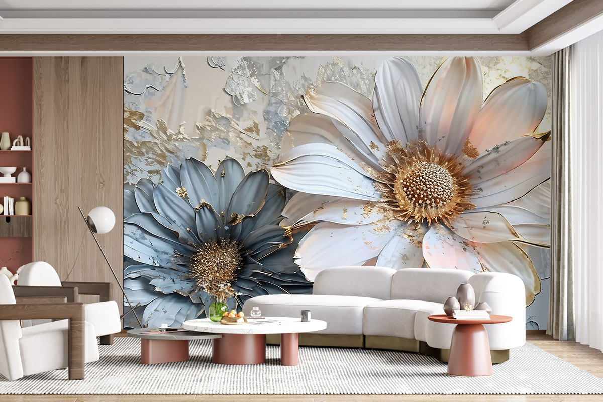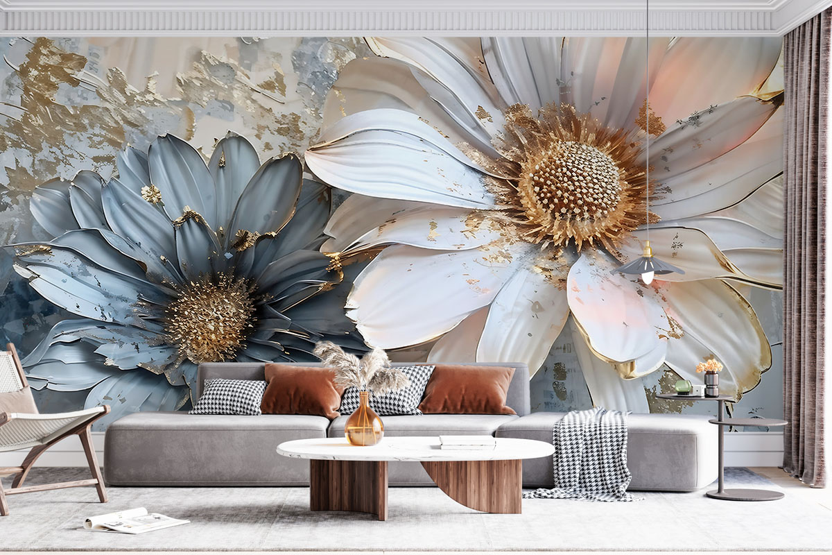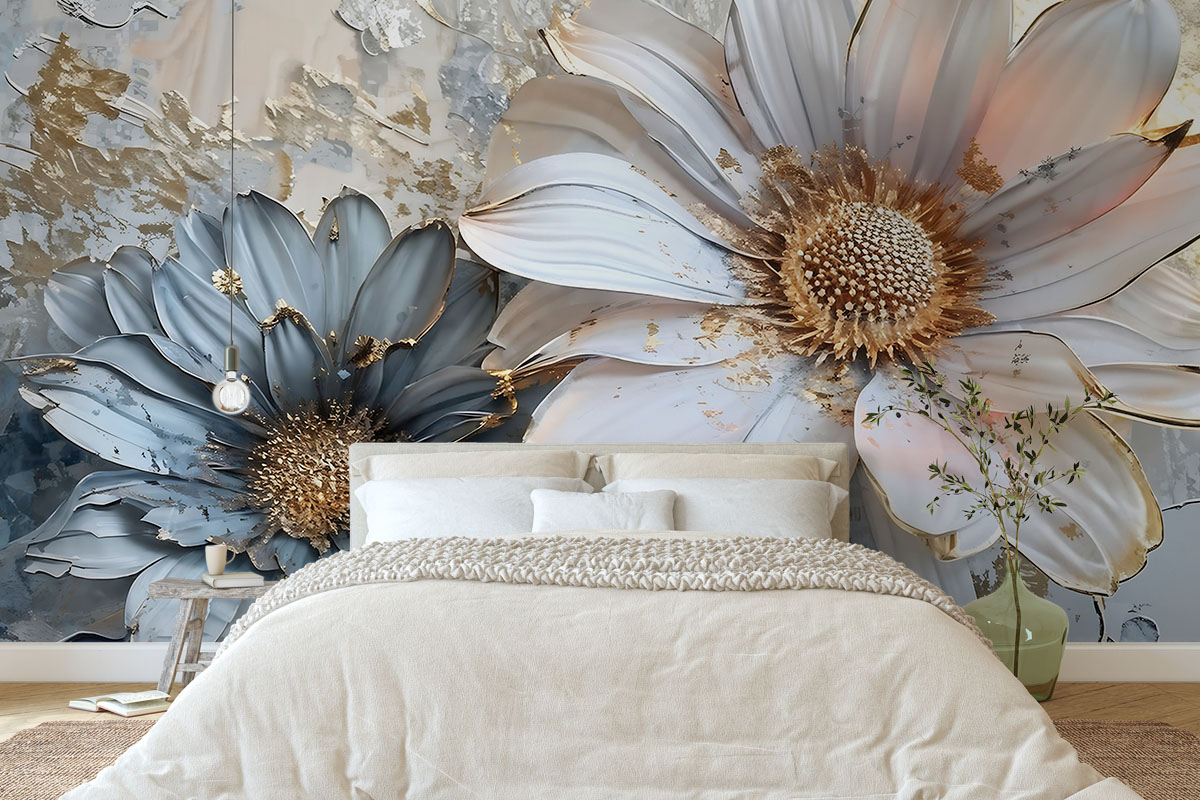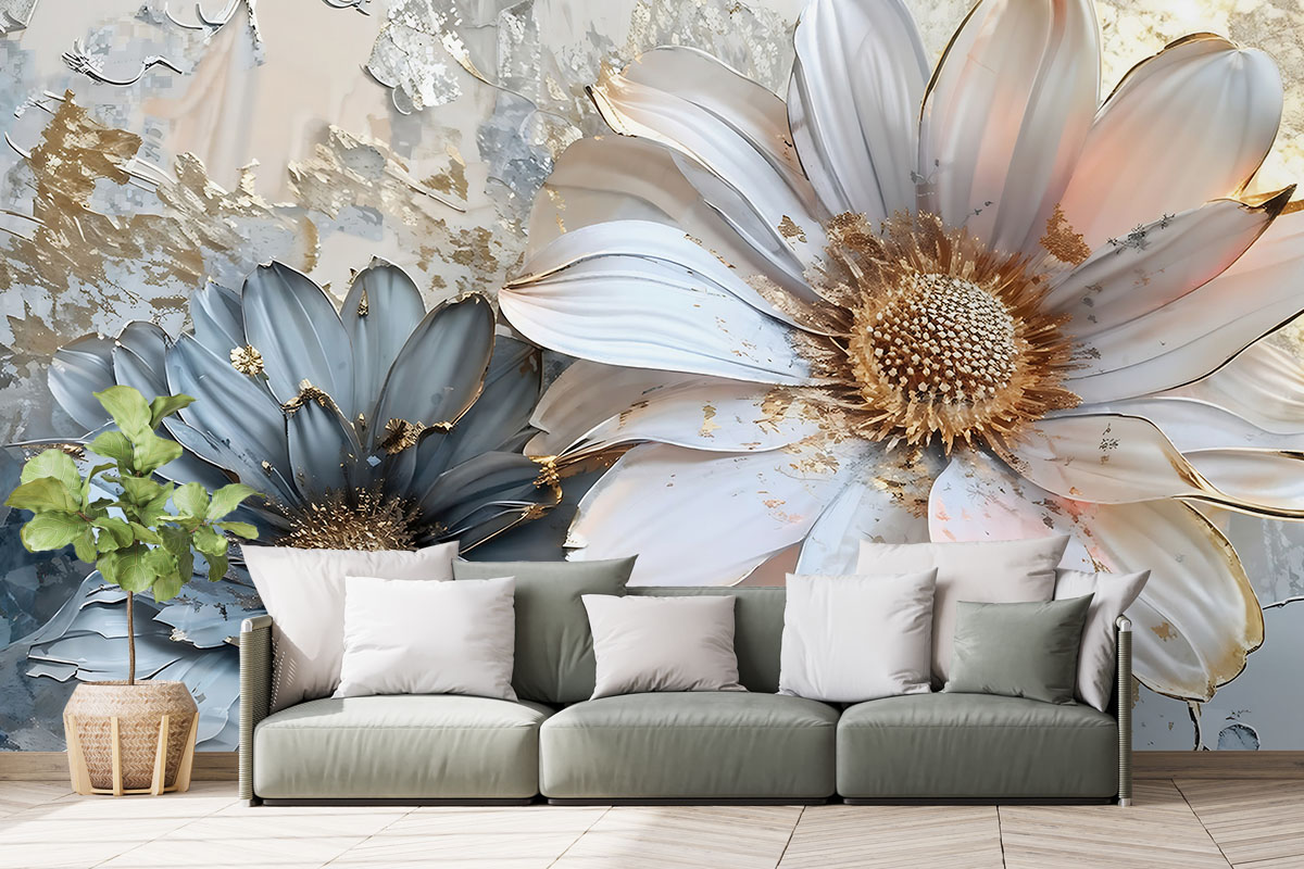 Wil je de muur combineren met verf? We hebben drie Flexa Pure kleuren geselecteerd die perfect matchen met dit fotobehang Gouden margrietjes. Zo creëer je eenvoudig een harmonieus interieur.