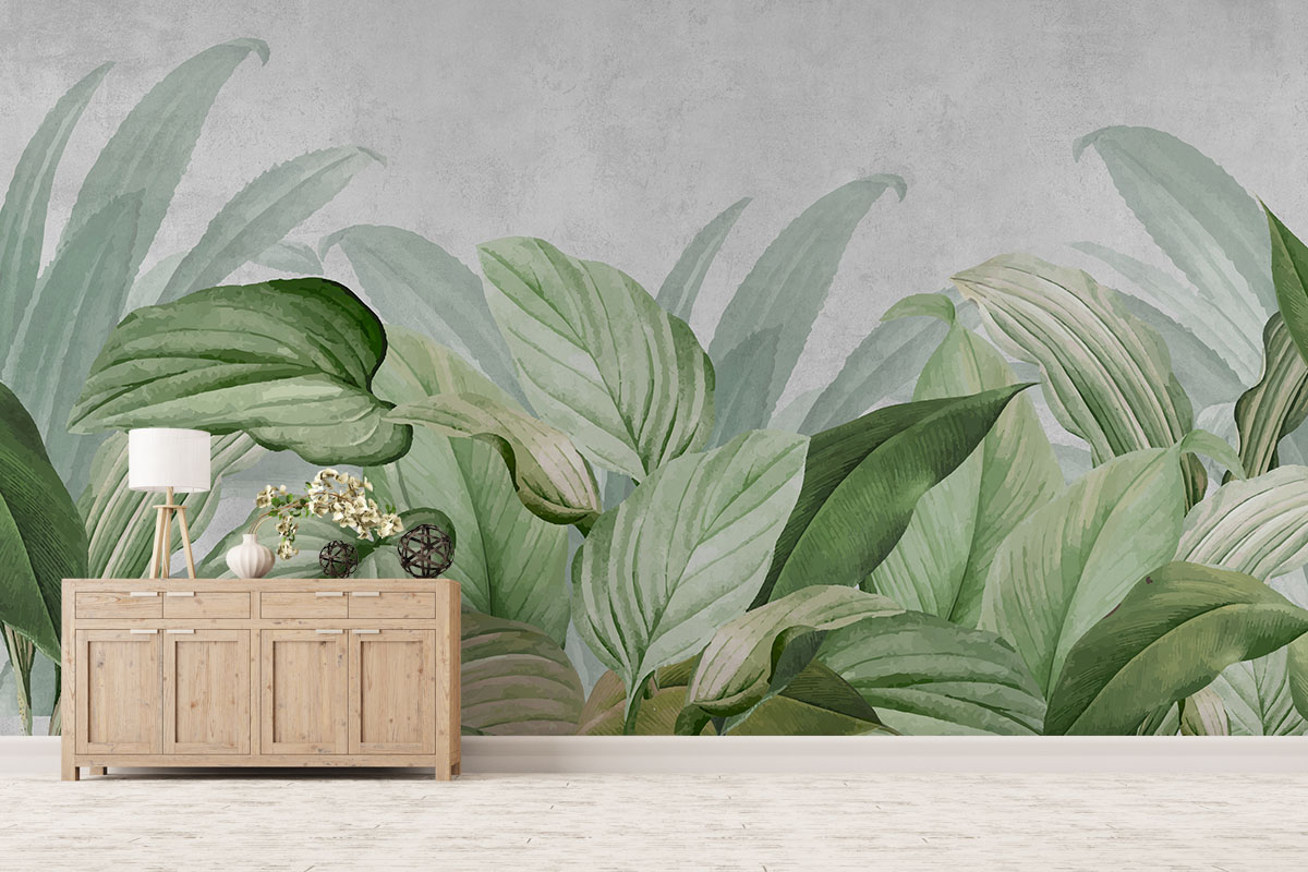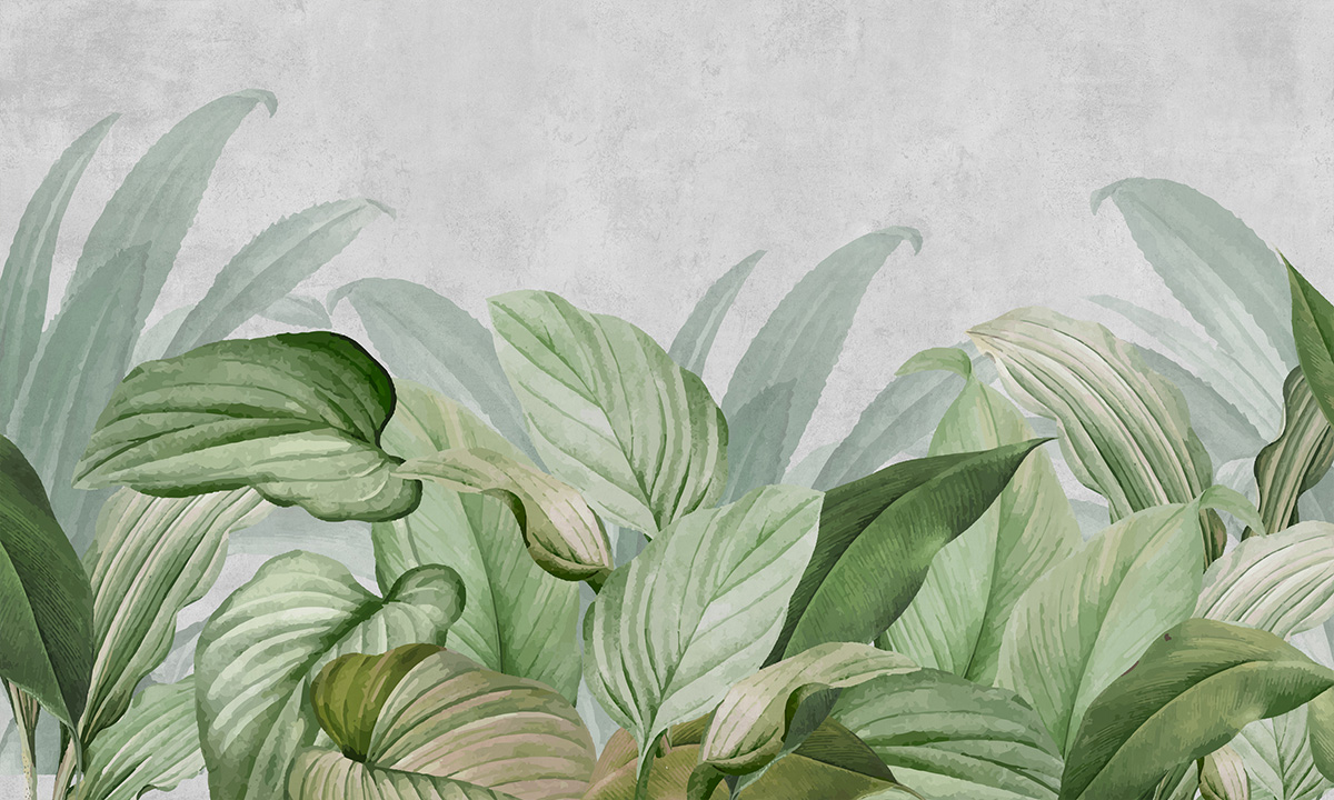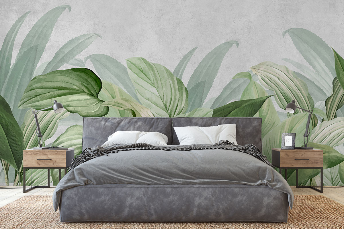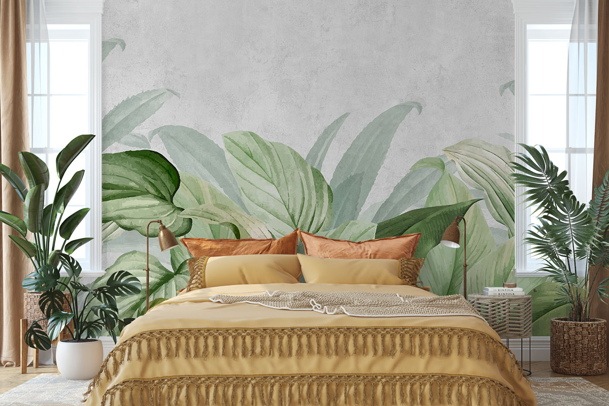 Zachte aquarelbladeren in verschillende groentinten creëren een kalme en frisse sfeer. Perfect voor elke ruimte.