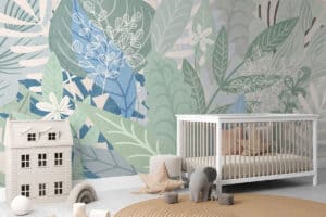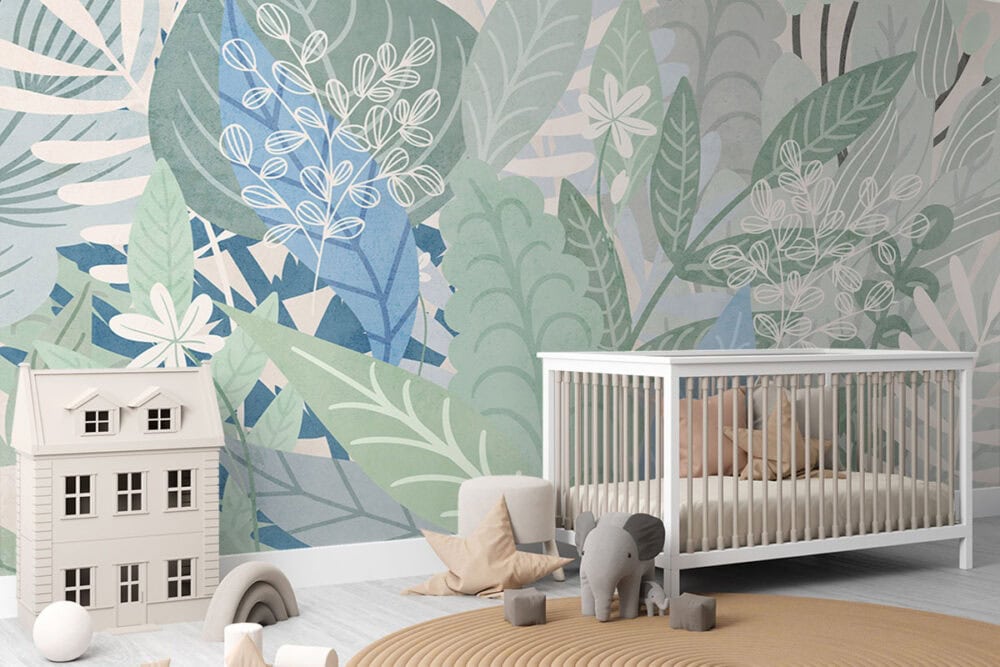 Wil je naast het behang ook een muur in de baby- of kinderkamer verven? Wij hebben alvast 3 Flexa Pure kleuren geselecteerd die perfect passen bij dit fotobehang Groene en blauwe bladeren.