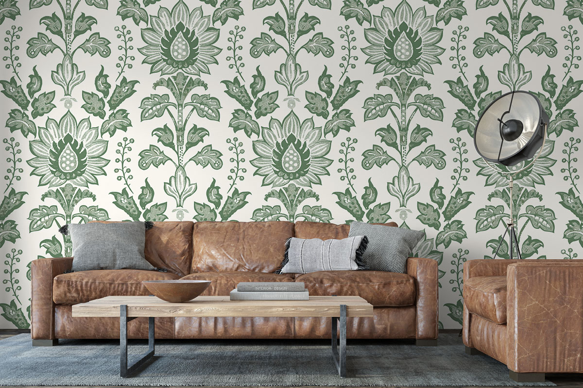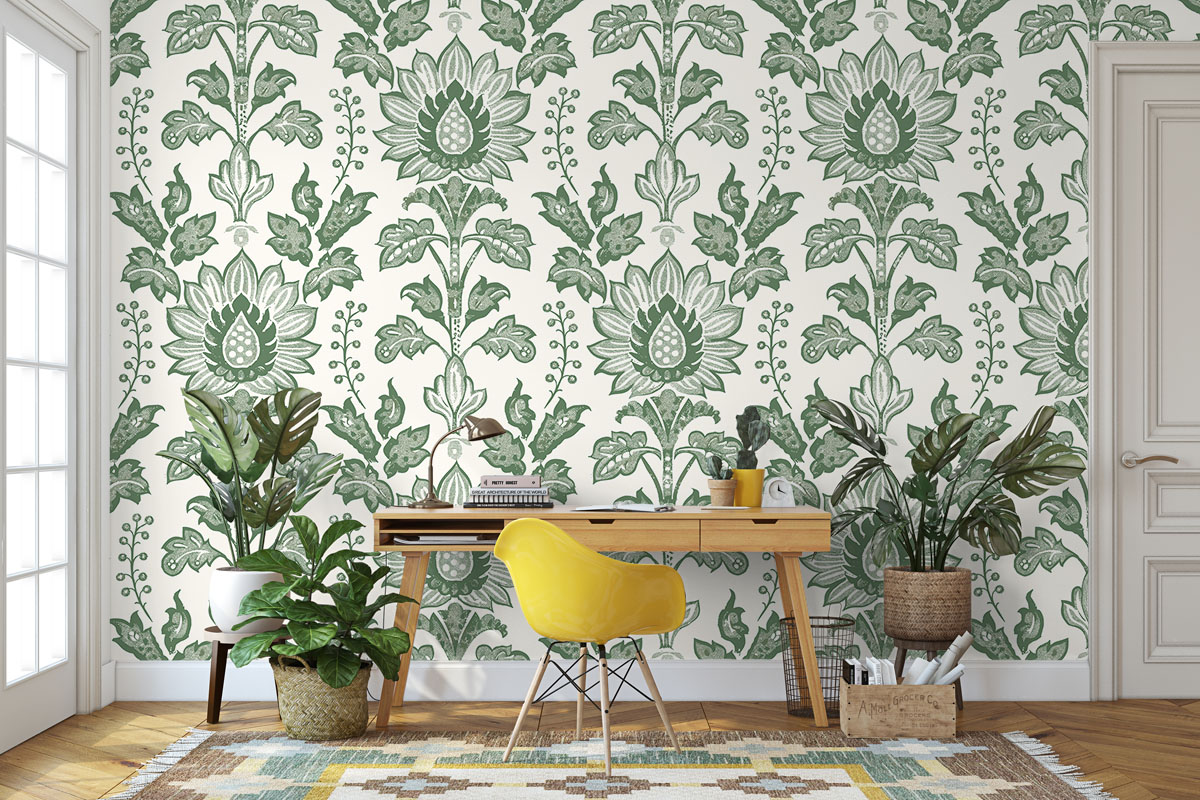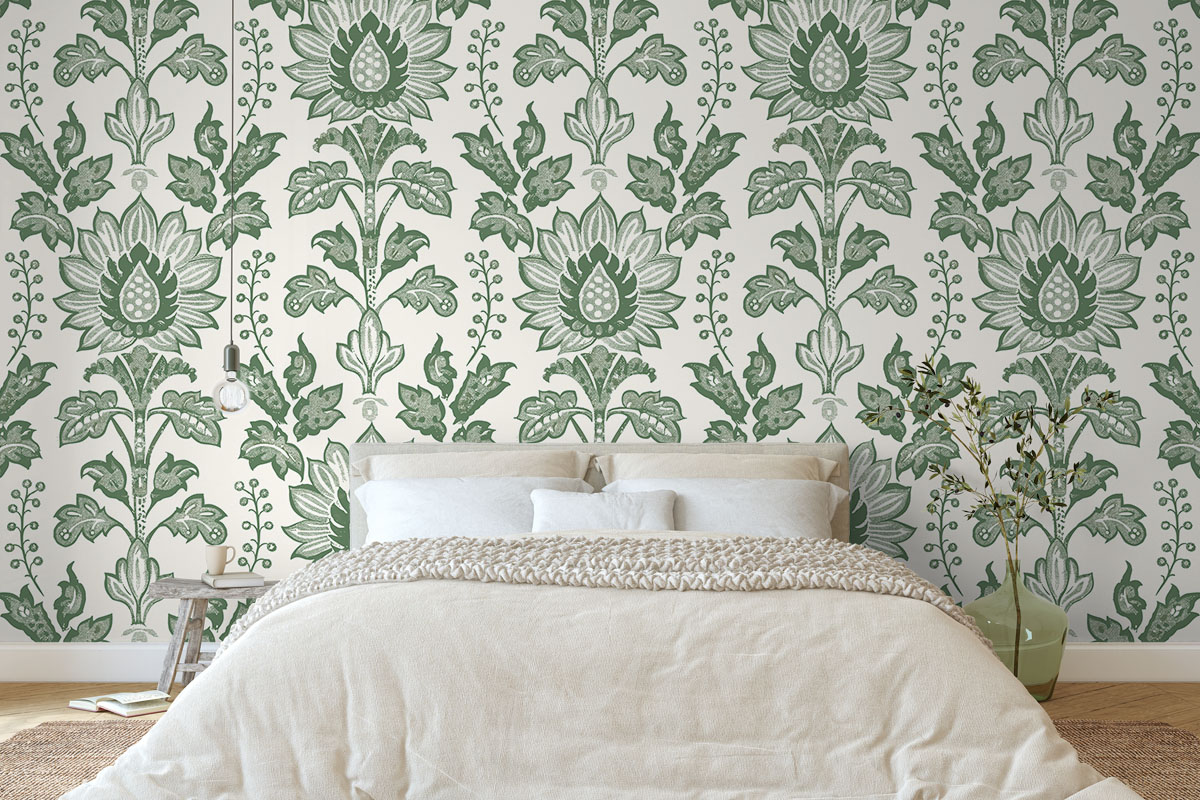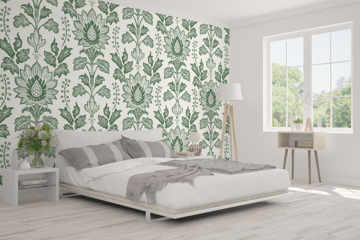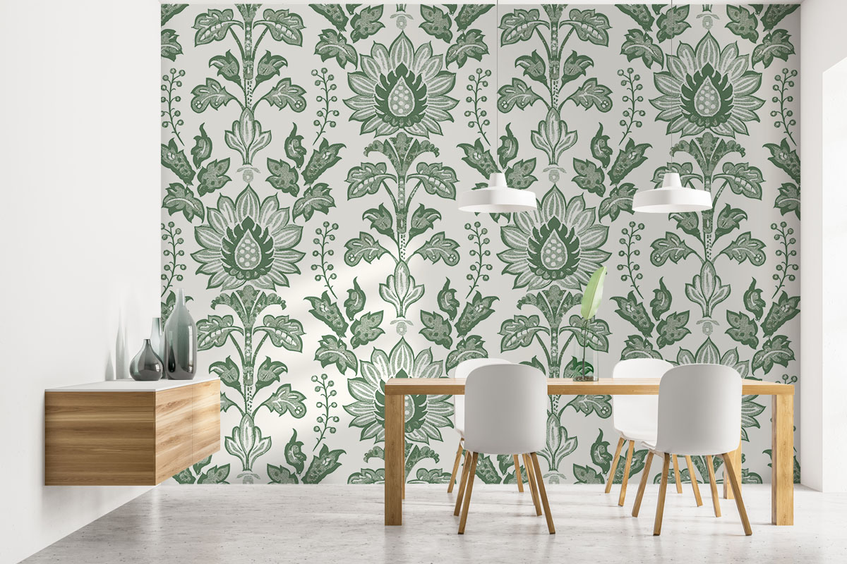 Wil je de muur combineren met verf? We hebben drie Flexa Pure kleuren geselecteerd die perfect matchen met dit fotobehang Groene lotus damast. Zo creëer je eenvoudig een harmonieus interieur.