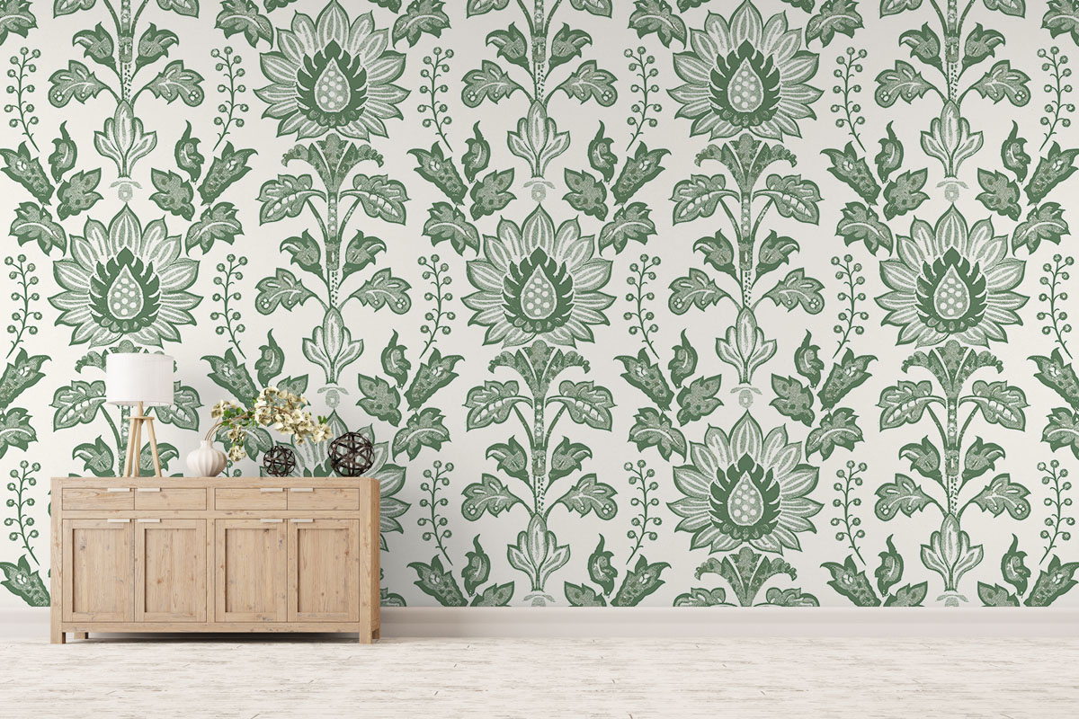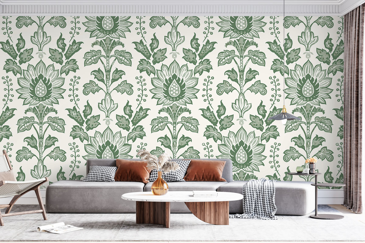 Jouw design Groene lotus damast wordt geprint op hoogwaardig vliesbehang van premium kwaliteit. Dit stevige behang (200 g/m²) is duurzaam, krasvast en behoudt jarenlang zijn kleur en structuur — perfect voor elke woonruimte, van woonkamer tot slaapkamer of kantoor. Het fotobehang wordt volledig op maat gemaakt, zodat het ontwerp naadloos aansluit op jouw muur. Dankzij de gladde afwerking en strakke structuur komen kleuren en details prachtig tot leven.