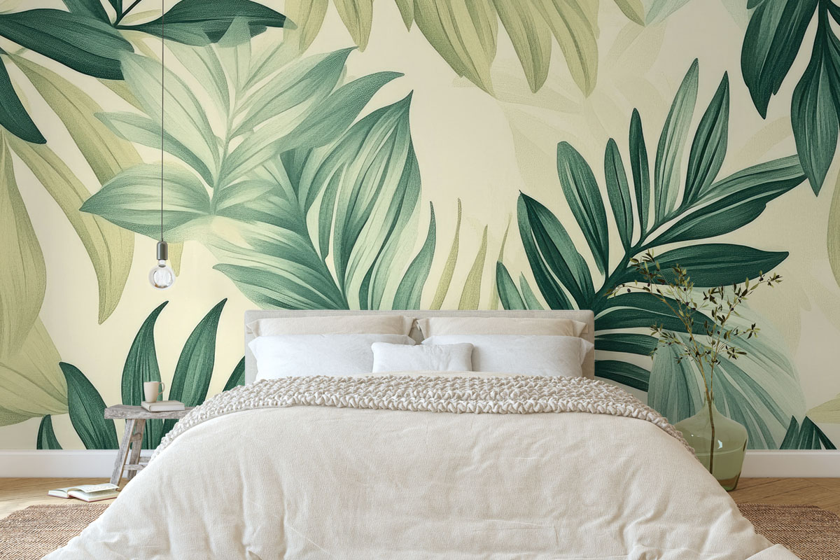 Wil je de muur combineren met verf? We hebben drie Flexa Pure kleuren geselecteerd die perfect matchen met dit fotobehang Groene palmen. Zo creëer je eenvoudig een harmonieus interieur.