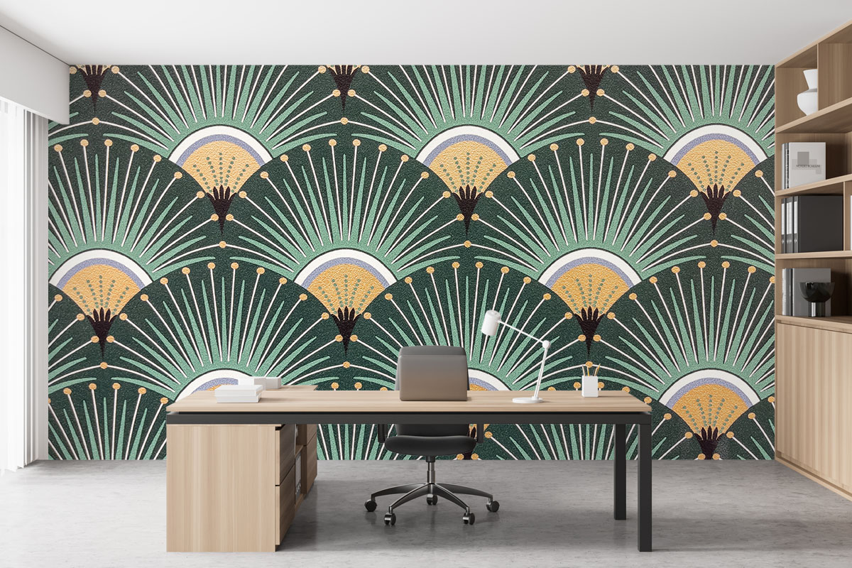 Jouw design Groene waaier wordt geprint op hoogwaardig vliesbehang van premium kwaliteit. Dit stevige behang (200 g/m²) is duurzaam, krasvast en behoudt jarenlang zijn kleur en structuur — perfect voor elke woonruimte, van woonkamer tot slaapkamer of kantoor. Het fotobehang wordt volledig op maat gemaakt, zodat het ontwerp naadloos aansluit op jouw muur. Dankzij de gladde afwerking en strakke structuur komen kleuren en details prachtig tot leven.