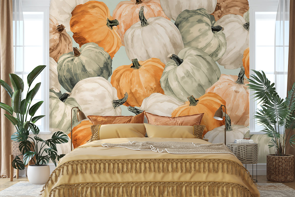 Wil je de muur combineren met verf? We hebben drie Flexa Pure kleuren geselecteerd die perfect matchen met dit fotobehang Herfst aquarel pompoenen. Zo creëer je eenvoudig een harmonieus interieur.