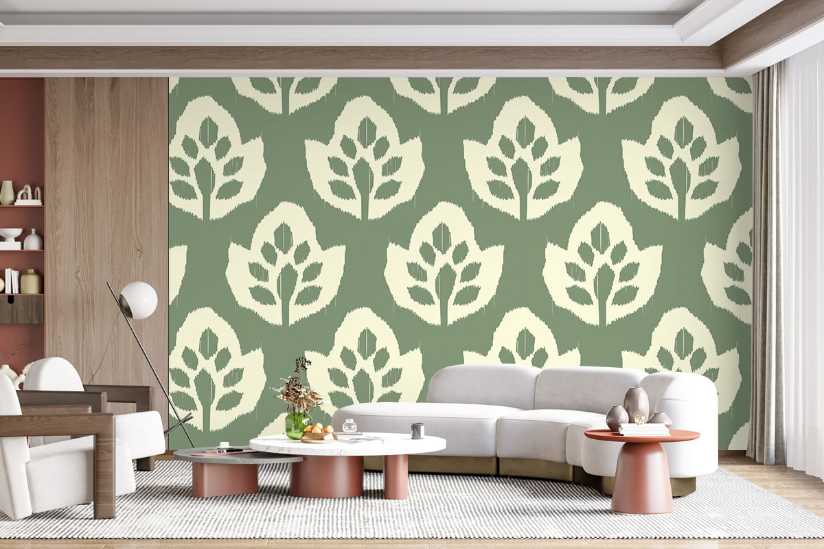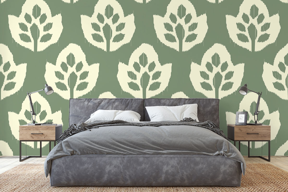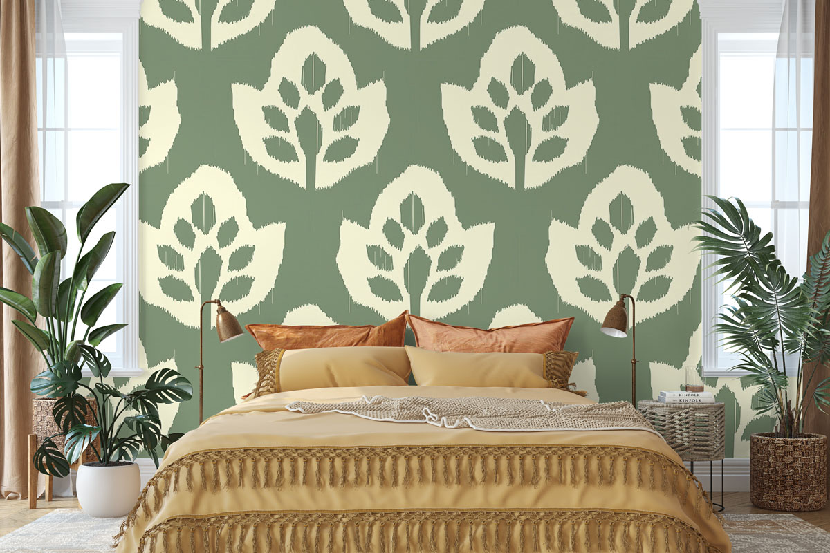 Jouw design Ikat bladpatroon wordt geprint op hoogwaardig vliesbehang van premium kwaliteit. Dit stevige behang (200 g/m²) is duurzaam, krasvast en behoudt jarenlang zijn kleur en structuur — perfect voor elke woonruimte, van woonkamer tot slaapkamer of kantoor. Het fotobehang wordt volledig op maat gemaakt, zodat het ontwerp naadloos aansluit op jouw muur. Dankzij de gladde afwerking en strakke structuur komen kleuren en details prachtig tot leven.