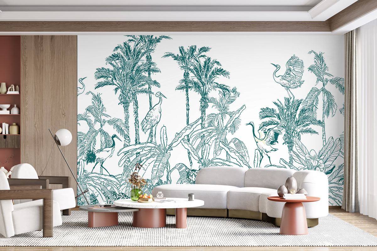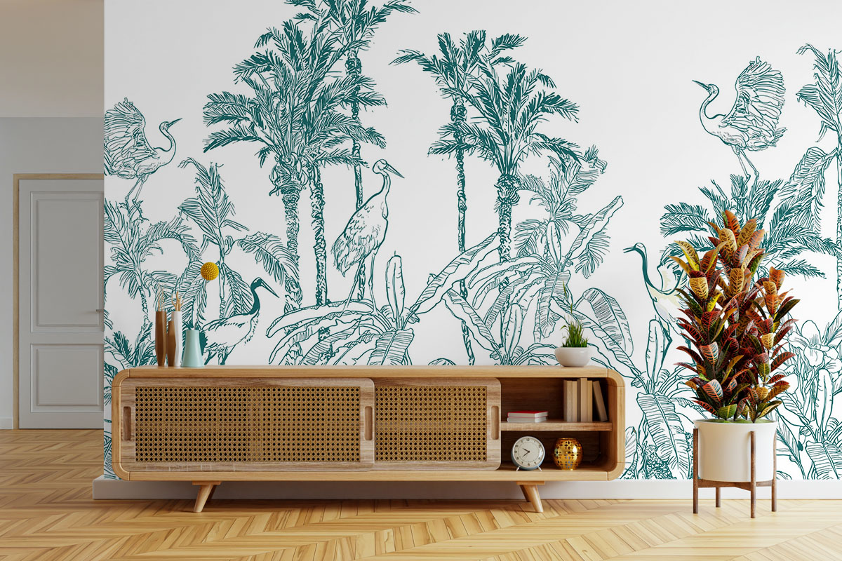 Jouw design Jungle palmbomen wordt geprint op hoogwaardig vliesbehang van premium kwaliteit. Dit stevige behang (200 g/m²) is duurzaam, krasvast en behoudt jarenlang zijn kleur en structuur — perfect voor elke woonruimte, van woonkamer tot slaapkamer of kantoor. Het fotobehang wordt volledig op maat gemaakt, zodat het ontwerp naadloos aansluit op jouw muur. Dankzij de gladde afwerking en strakke structuur komen kleuren en details prachtig tot leven.