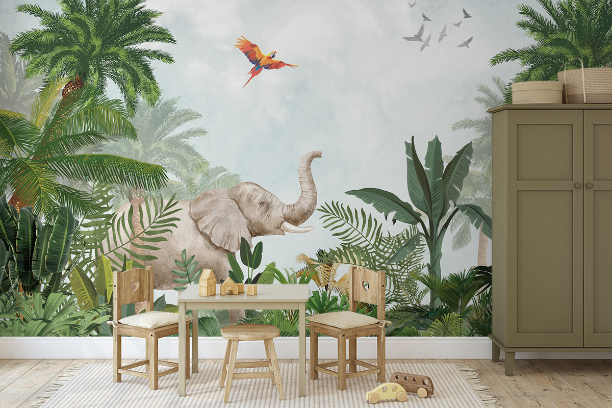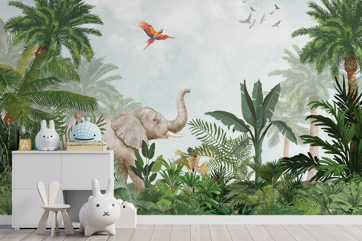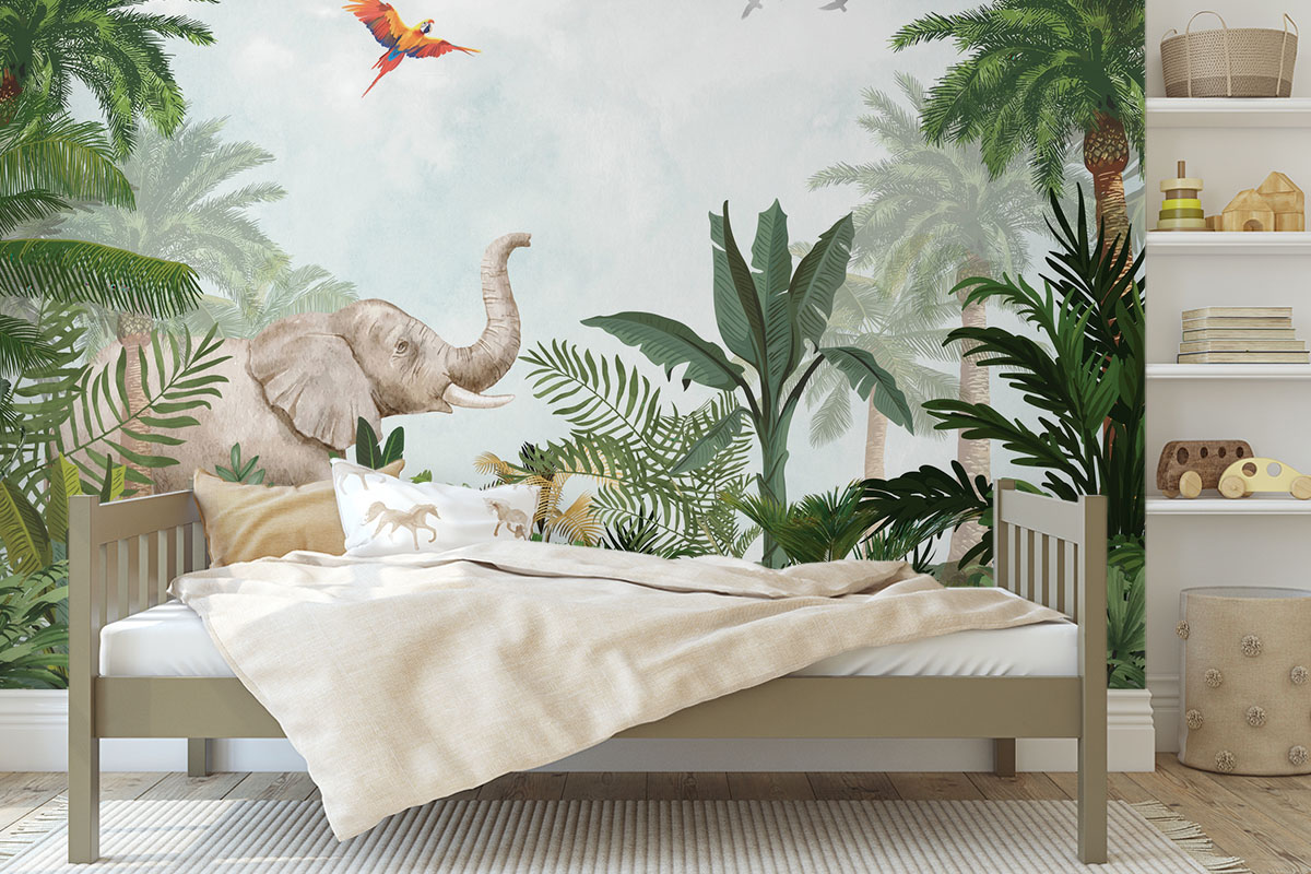 Wil je naast het behang ook een muur in de baby- of kinderkamer verven? Wij hebben alvast 3 Flexa Pure kleuren geselecteerd die perfect passen bij dit fotobehang Jungle parade.