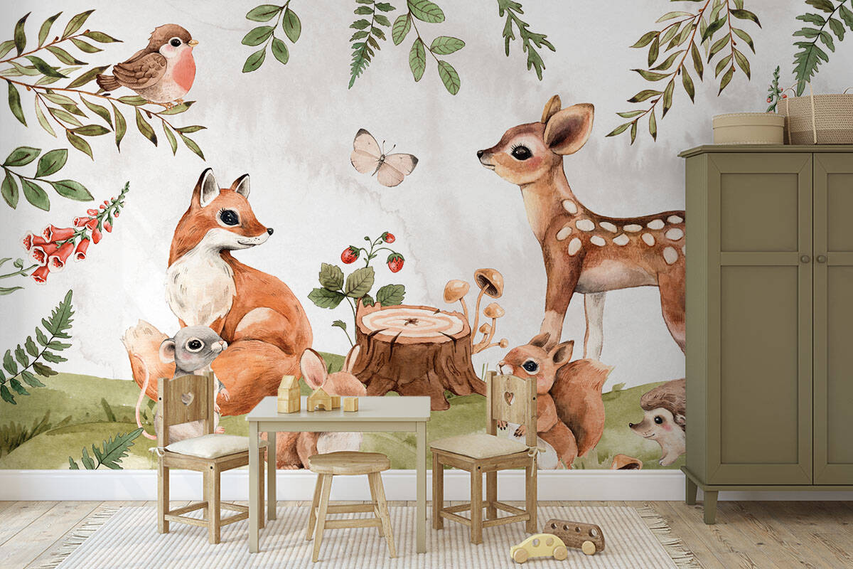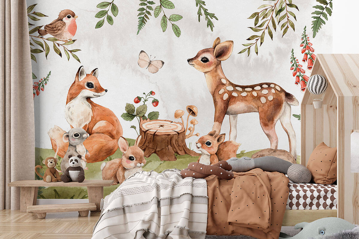 Jouw design Kleine vriendjes in het bos wordt geprint op hoogwaardig duurzaam vliesbehang van premium kwaliteit. Dit stevige behang (200 g/m²) is krasvast, robuust en blijft jarenlang mooi — perfect voor in de kinderkamer, babykamer of speelkamer. Je kunt het behang helemaal op maat laten maken, zodat het ontwerp precies past op jouw muur. Dankzij de gladde afwerking en strakke structuur komt elk detail van het ontwerp perfect tot zijn recht.