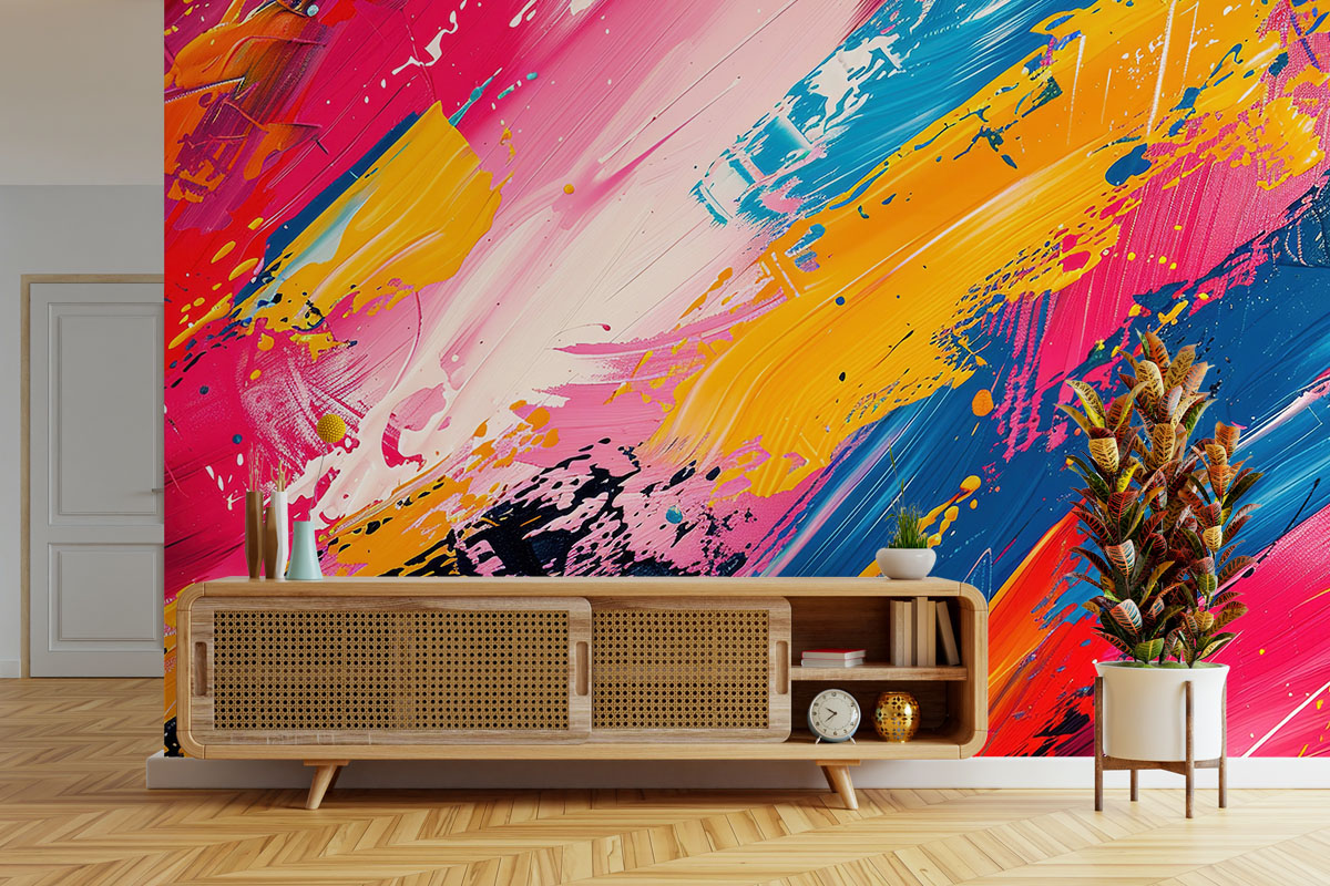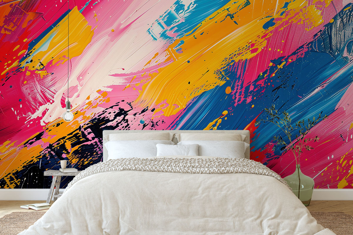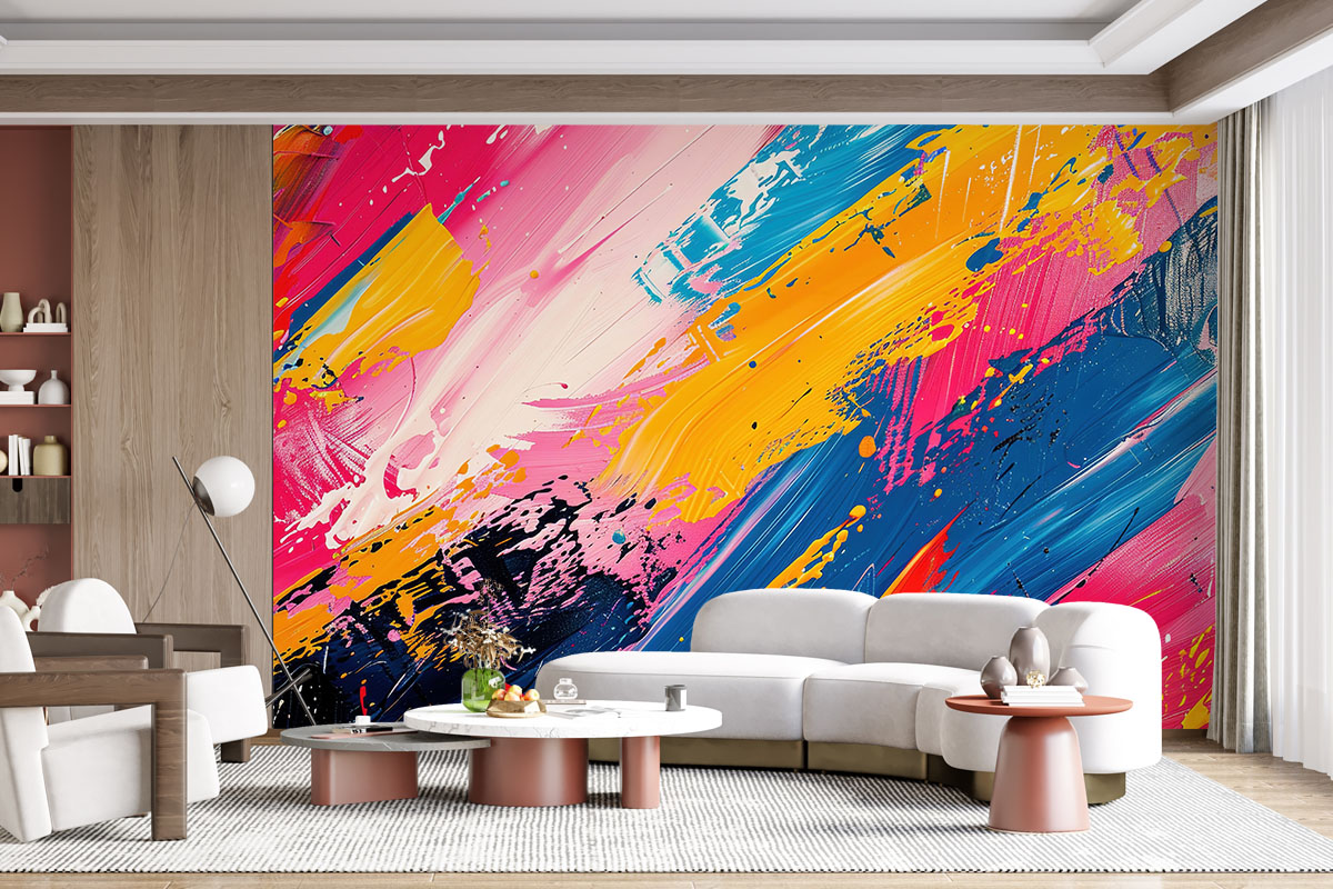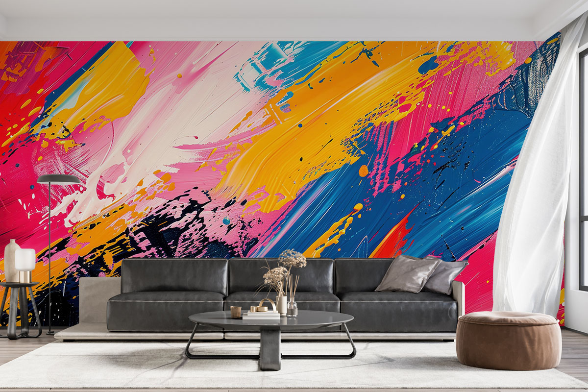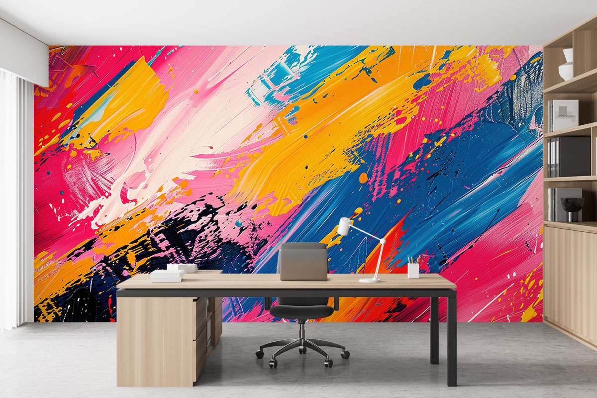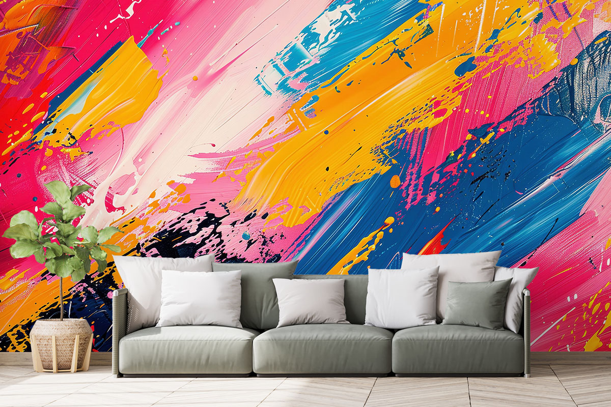 Jouw design Kleurexplosie wordt geprint op hoogwaardig vliesbehang van premium kwaliteit. Dit stevige behang (200 g/m²) is duurzaam, krasvast en behoudt jarenlang zijn kleur en structuur — perfect voor elke woonruimte, van woonkamer tot slaapkamer of kantoor. Het fotobehang wordt volledig op maat gemaakt, zodat het ontwerp naadloos aansluit op jouw muur. Dankzij de gladde afwerking en strakke structuur komen kleuren en details prachtig tot leven.