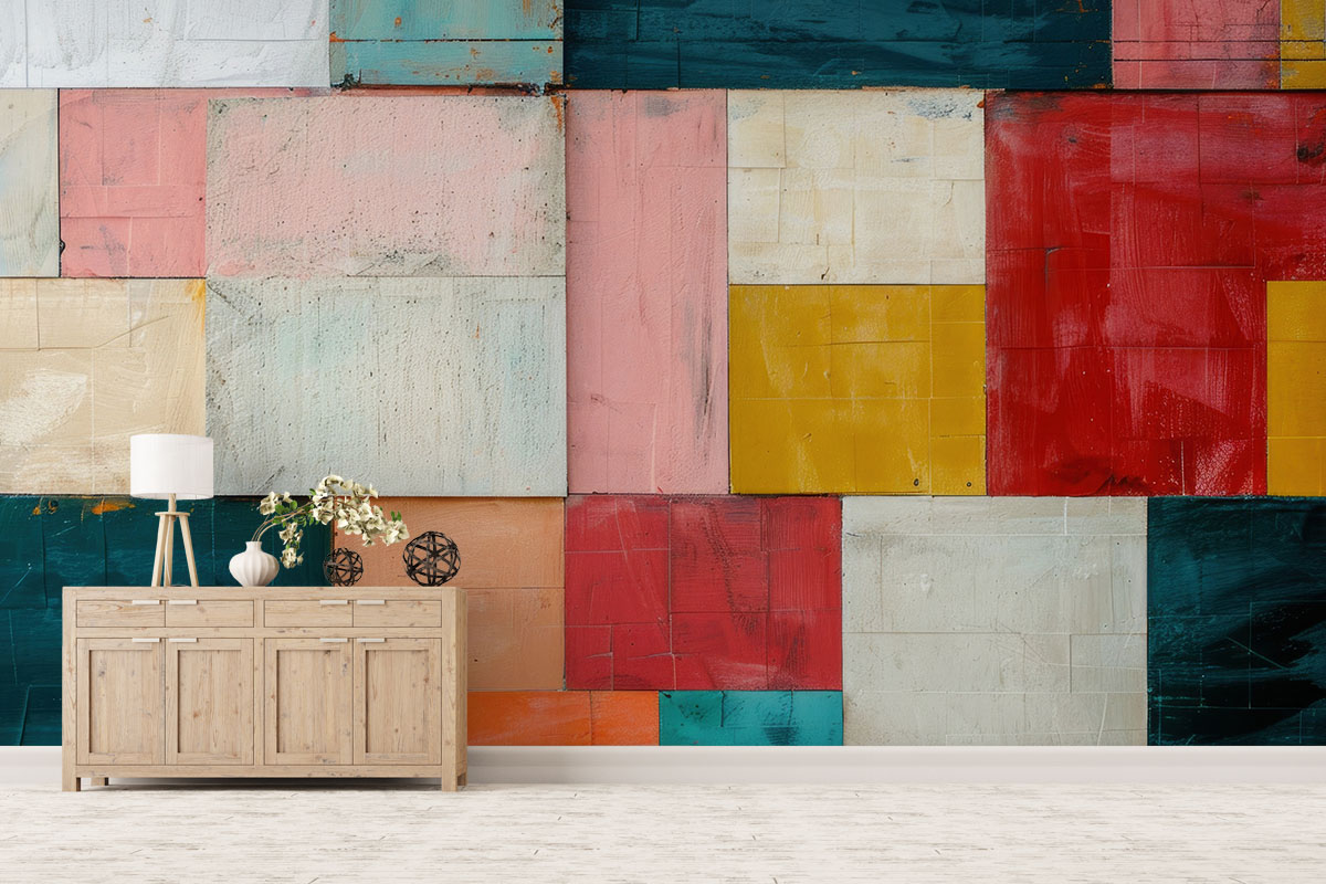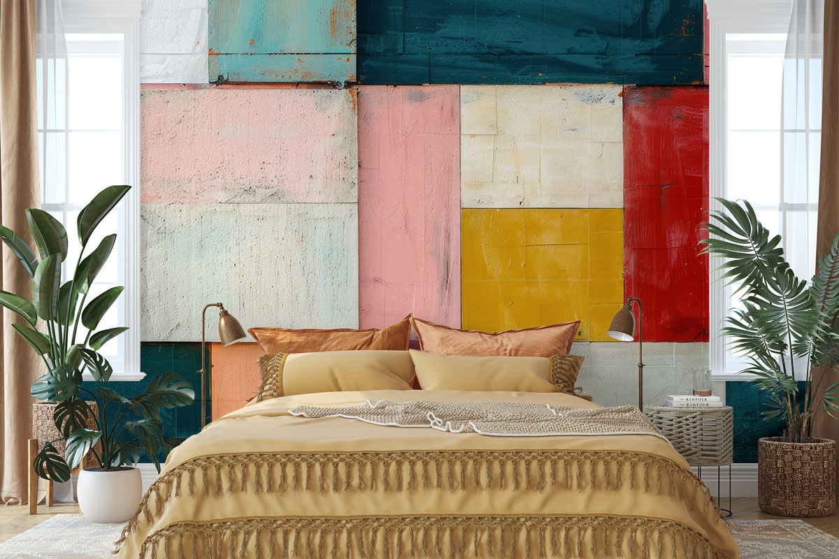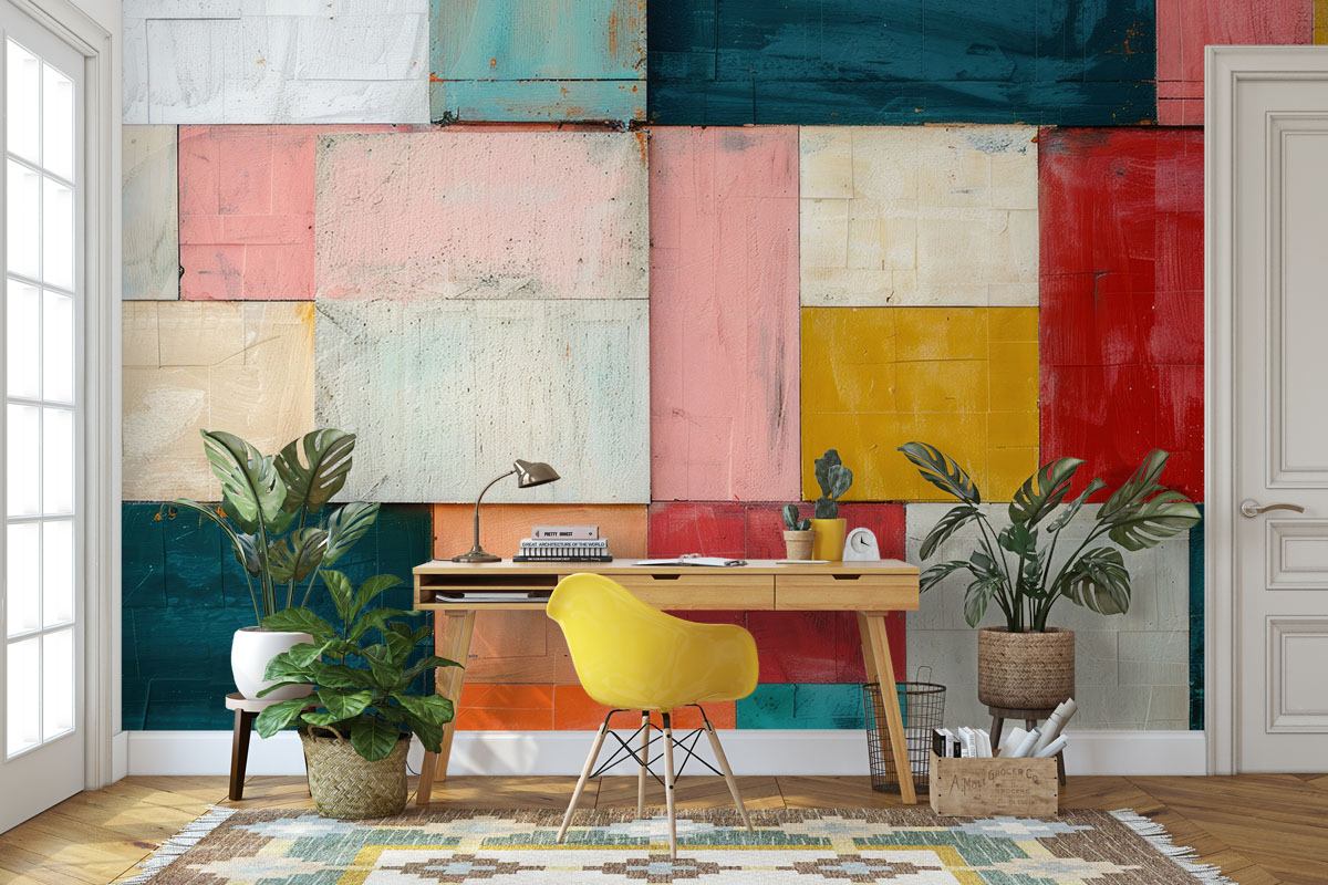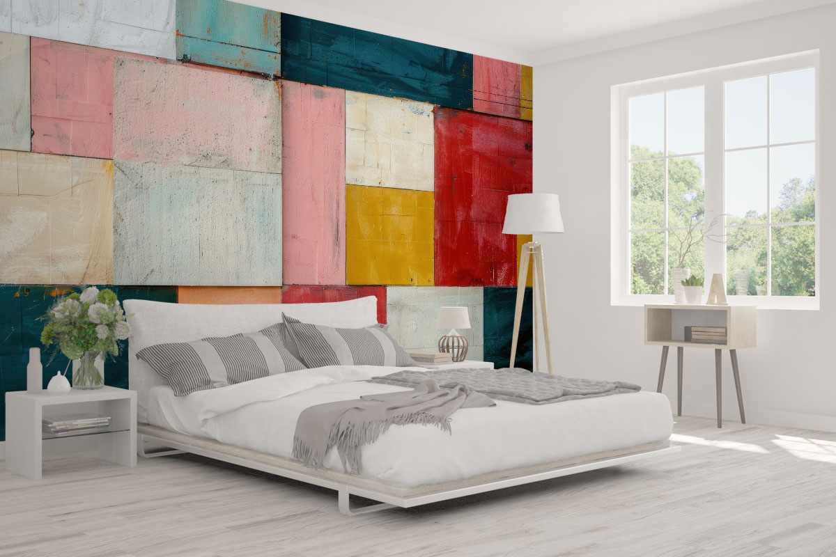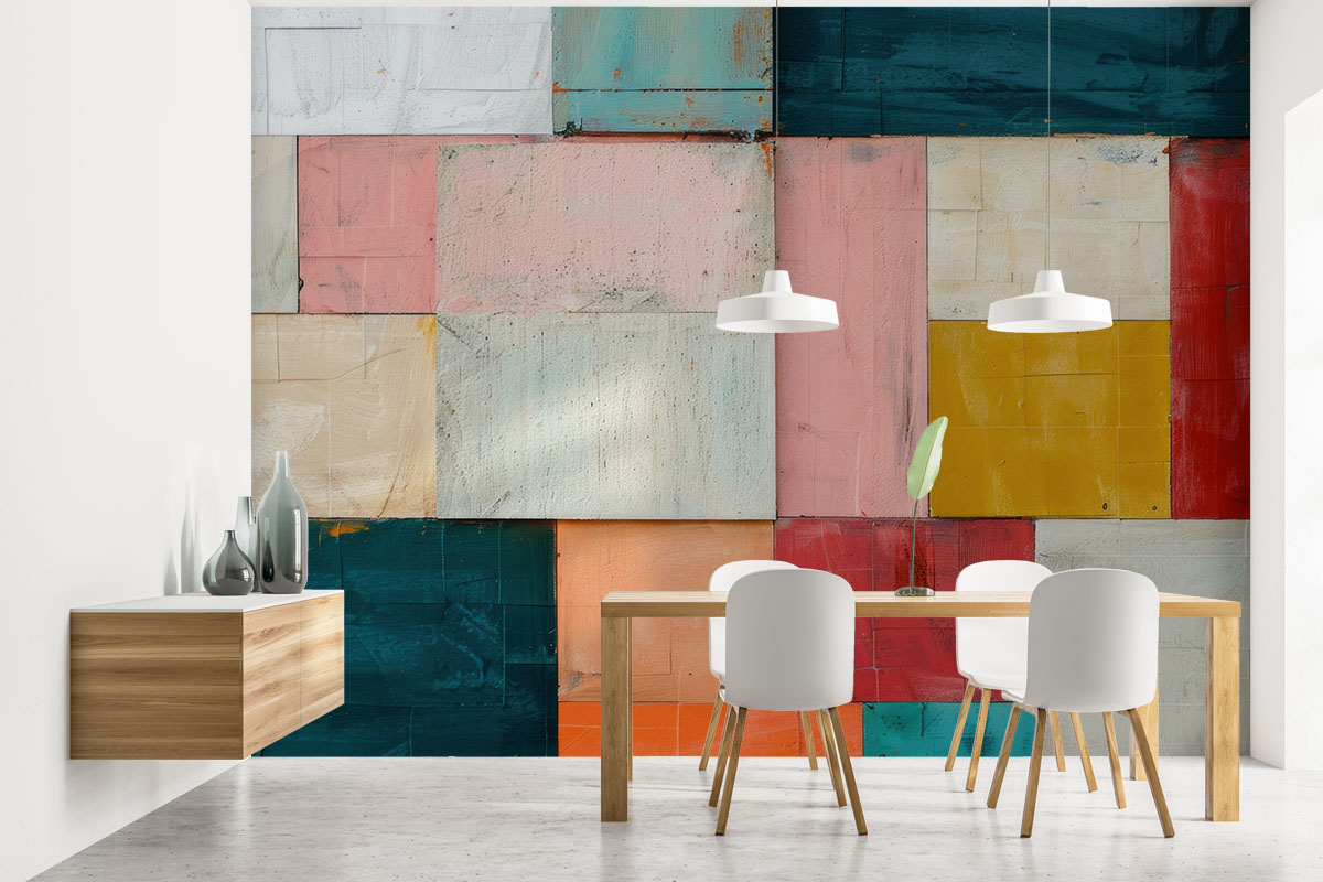 Wil je de muur combineren met verf? We hebben drie Flexa Pure kleuren geselecteerd die perfect matchen met dit fotobehang Kleurvlakken in balans. Zo creëer je eenvoudig een harmonieus interieur.