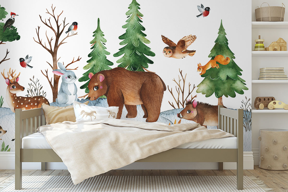 Jouw design Lieve bosvriendjes wordt geprint op hoogwaardig duurzaam vliesbehang van premium kwaliteit. Dit stevige behang (200 g/m²) is krasvast, robuust en blijft jarenlang mooi — perfect voor in de kinderkamer, babykamer of speelkamer. Je kunt het behang helemaal op maat laten maken, zodat het ontwerp precies past op jouw muur. Dankzij de gladde afwerking en strakke structuur komt elk detail van het ontwerp perfect tot zijn recht.
