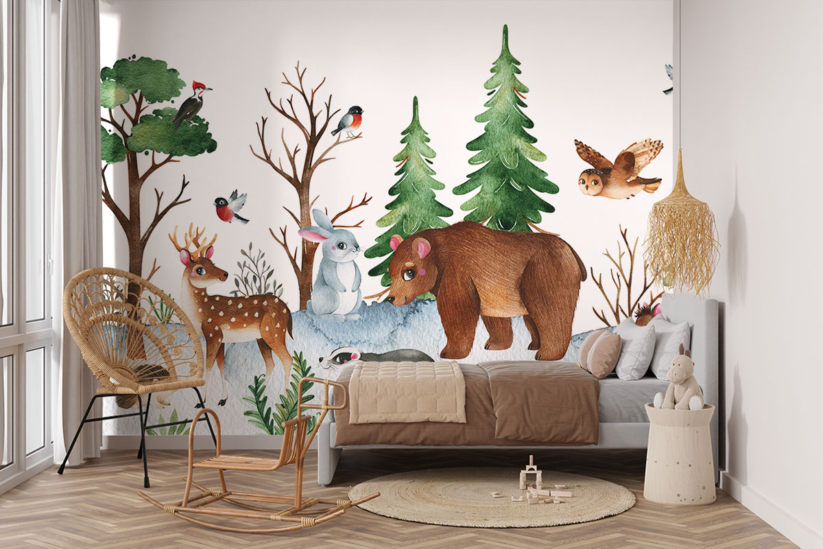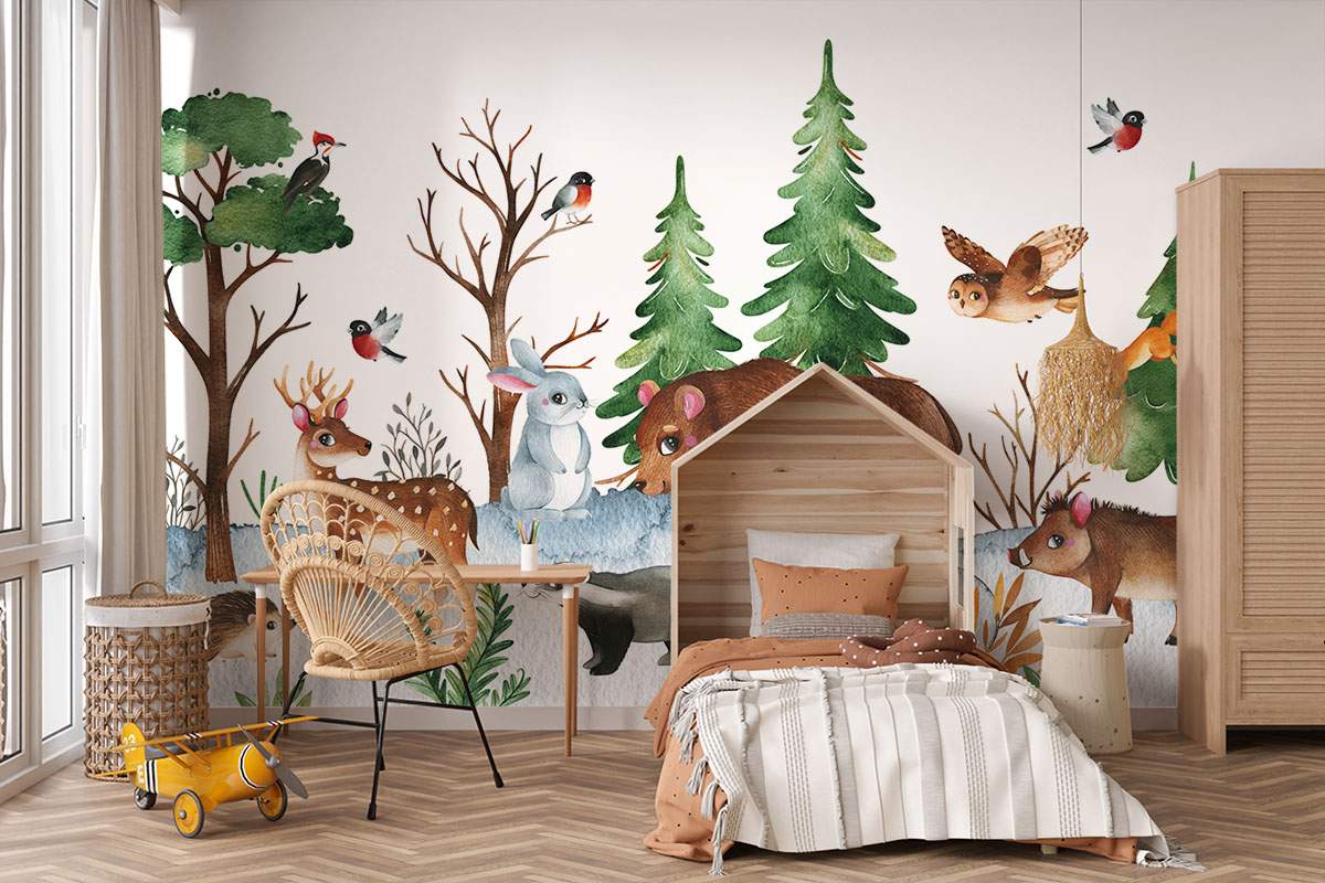 Jouw design Lieve bosvriendjes wordt geprint op hoogwaardig duurzaam vliesbehang van premium kwaliteit. Dit stevige behang (200 g/m²) is krasvast, robuust en blijft jarenlang mooi — perfect voor in de kinderkamer, babykamer of speelkamer. Je kunt het behang helemaal op maat laten maken, zodat het ontwerp precies past op jouw muur. Dankzij de gladde afwerking en strakke structuur komt elk detail van het ontwerp perfect tot zijn recht.